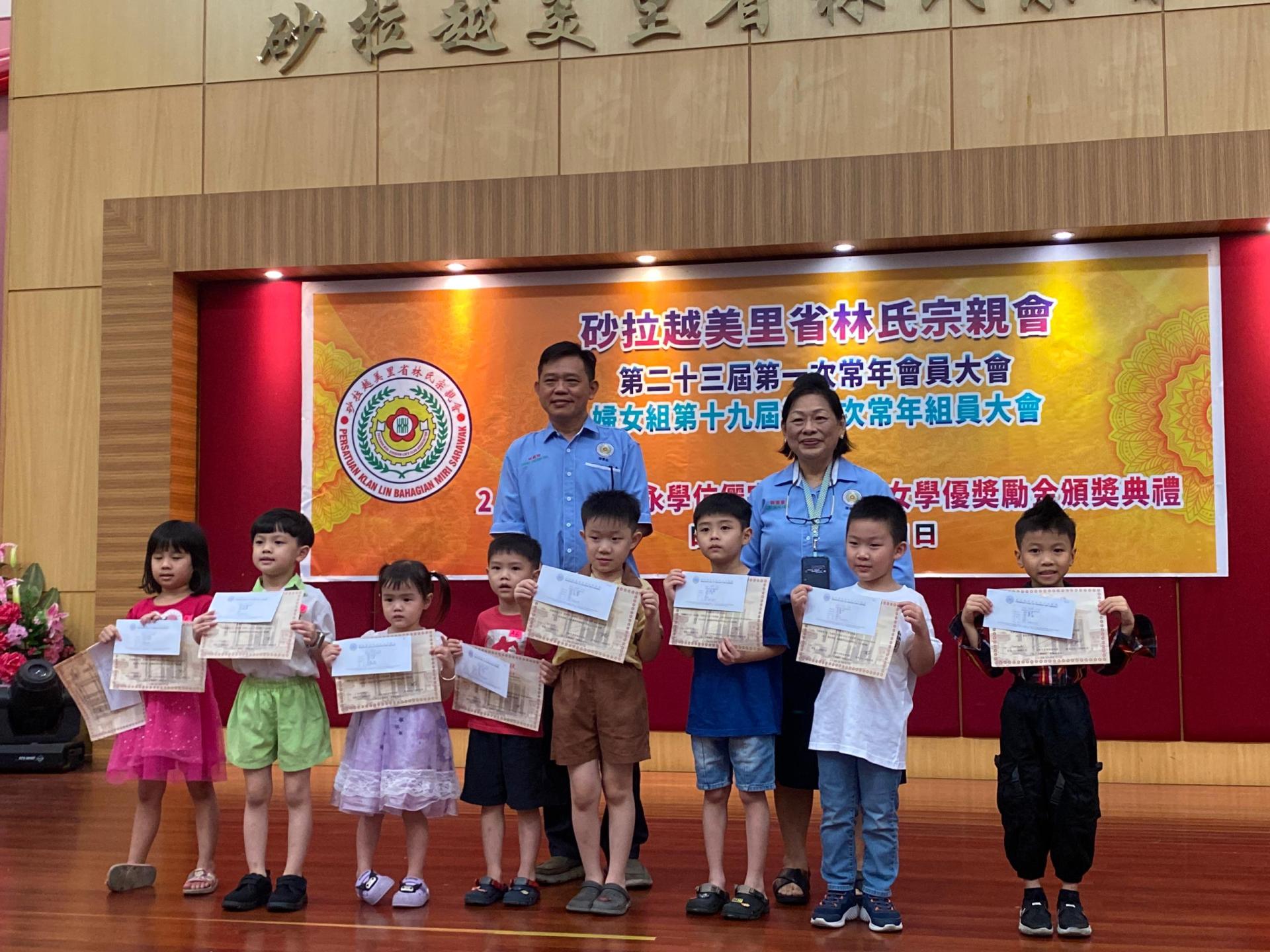 Lim Siew Hua juga menggalakkan para pelajar penerima anugerah agar menganggap pengiktirafan hari ini adalah hasil usaha gigih mereka, dan berharap ianya menjadi satu permulaan untuk terus mengejar kecemerlangan, mengenang jasa, serta suatu hari nanti memberi sumbangan kepada keluarga serta berkhidmat kepada masyarakat, sekali gus tidak mengecewakan harapan para ahli persatuan. 幼稚园得奖者合影。右为砂拉越美里省林氏宗亲会会长林淑华,左为教育主任林咸材。 Selain itu, Penyelaras Pendidikan persatuan Lim, Encik Lim Sian Chai dalam ucapannya menyatakan penghargaan kepada Penasihat Kehormat Seumur Hidup Tan Sri Lim Chang Ho atas sumbangan berterusan kepada dana anugerah, sekaligus mengiktiraf usaha gigih anak-anak ahli persatuan dan terus mendorong mereka untuk cemerlang dalam pelajaran.