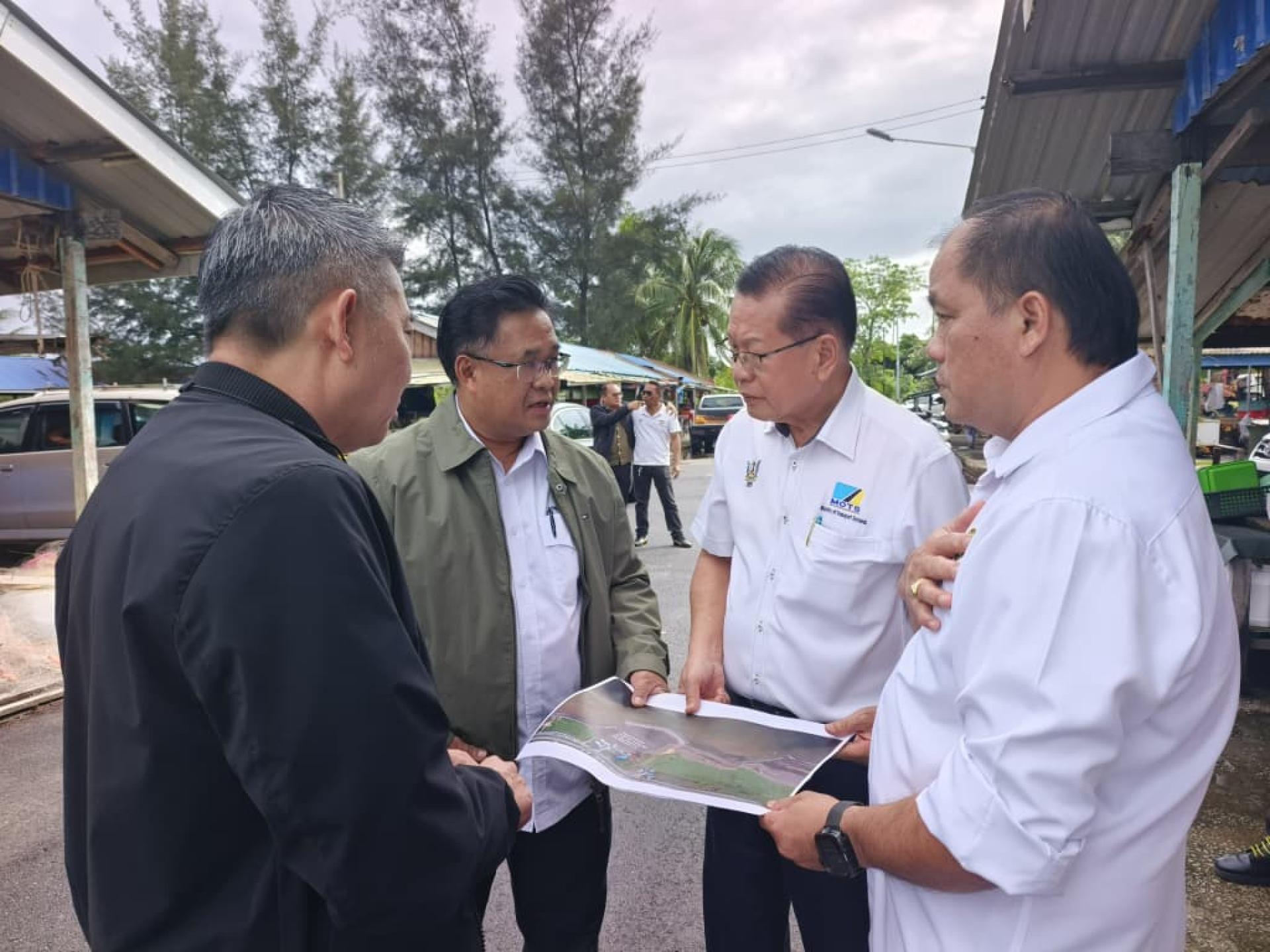 (本报美里5日讯)砂拉越交通部长拿督斯里李景胜今早与公共工程局(JKR)、美里市政局及砂拉越水利灌溉局(DID)官员召开会议,并在会前巡视甘榜巴杜沙都(Kampung Batu Satu)海边侵蚀与防波堤工程所衍生的新问题,商讨解决方案。