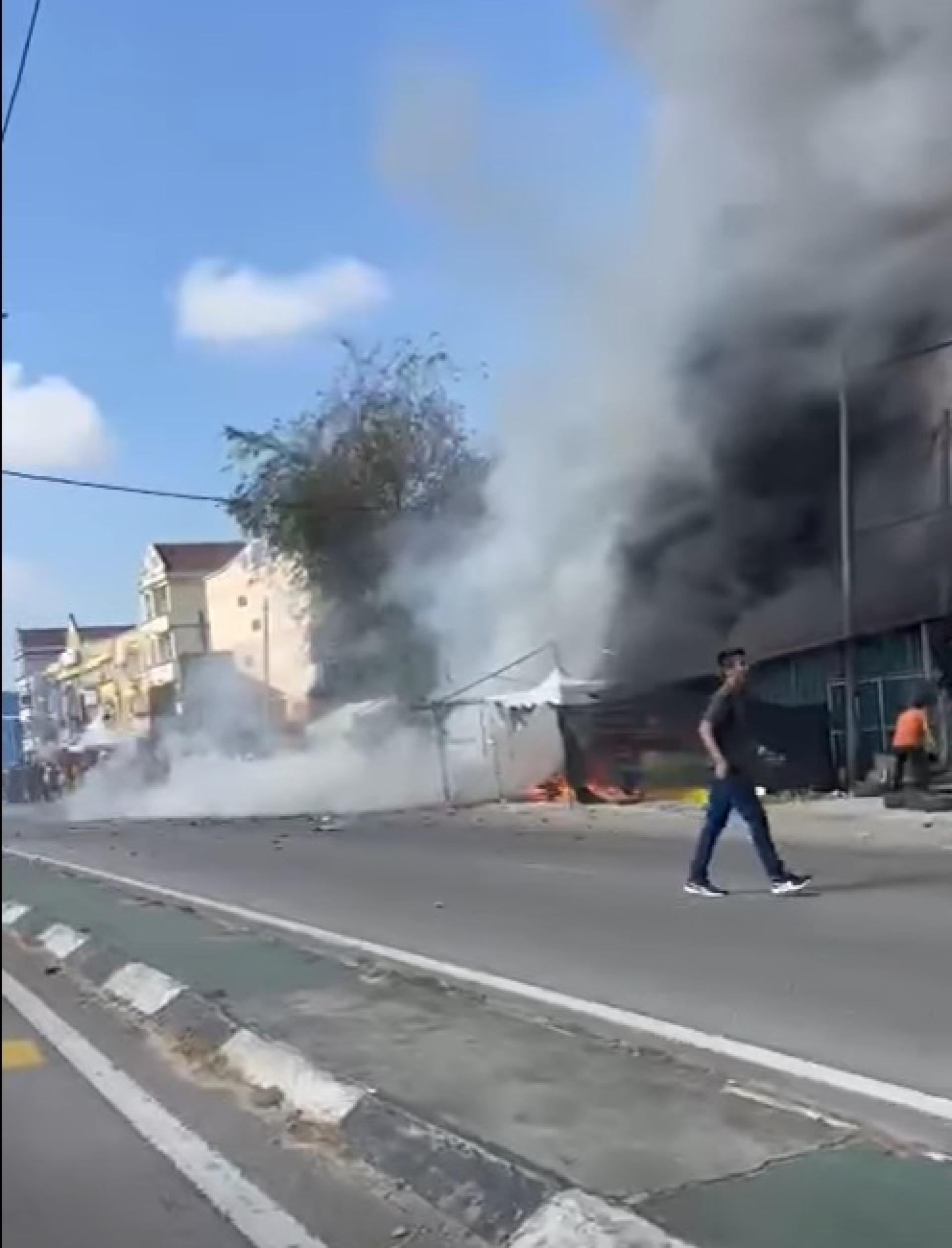 根据《Kosmo!》报道,此烟花爆竹档口就位于大马路旁。而烟花档口的突然失火,导致当地商贩和道路使用者陷入一片惊慌。