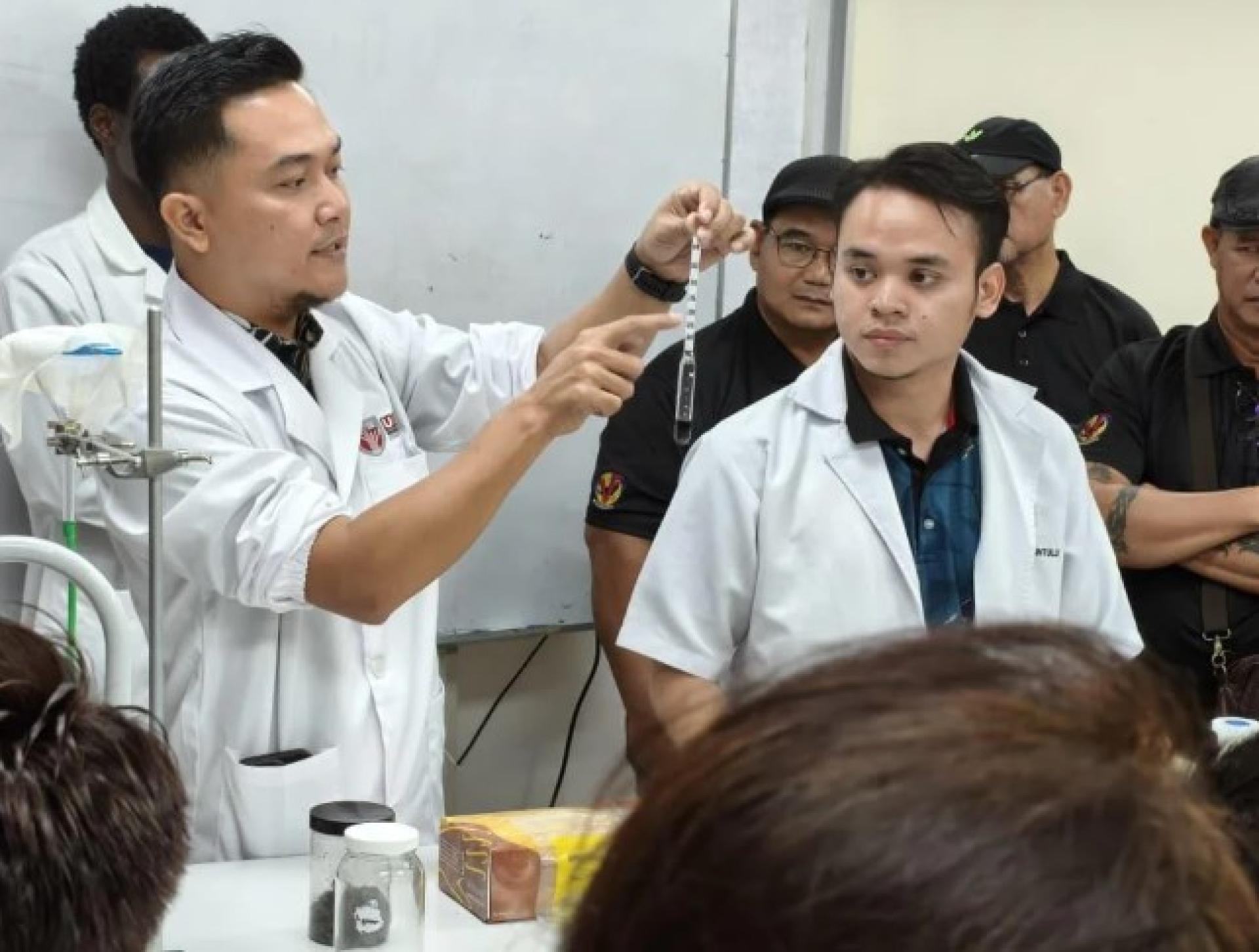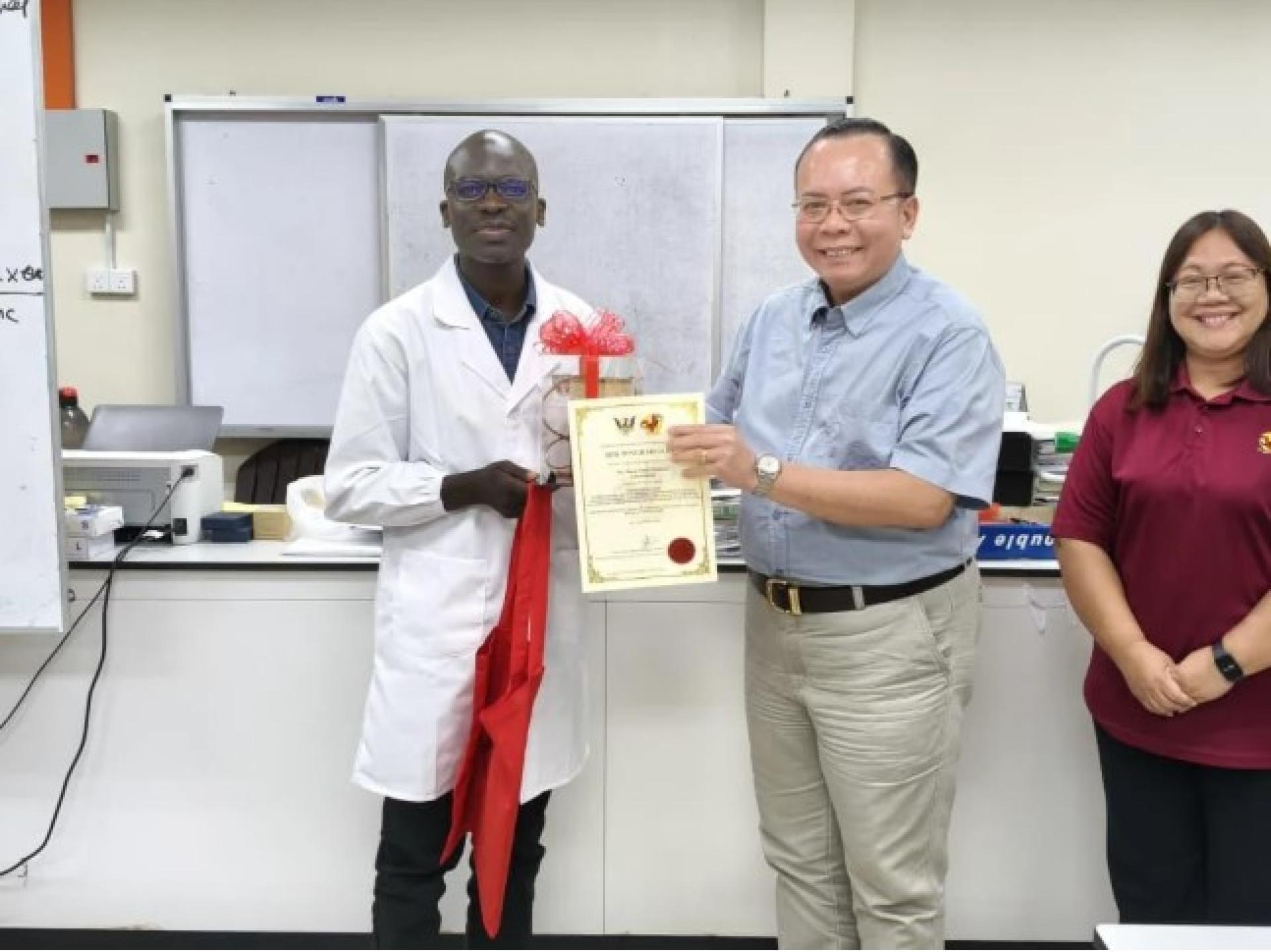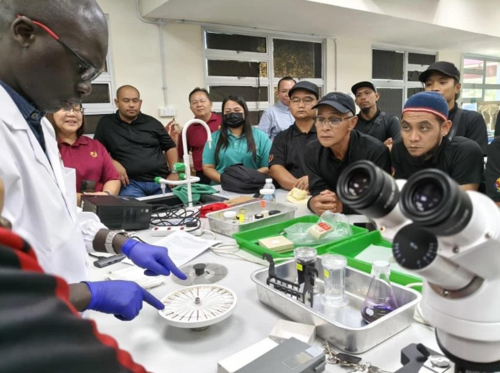 培训课程首先由三场专题讲座组成,包括砂拉越小型反刍动物胃肠道线虫感染研究成果分享、当前流行病学与诊断及可持续防控方法,以及营养管理在寄生虫控制中的应用策略,均由布拉保罗博士(Dr Bura Paul Thlama)与穆罕默德哈基姆博士(Dr Muhamad Hakim Ali Hanafiah)主讲。