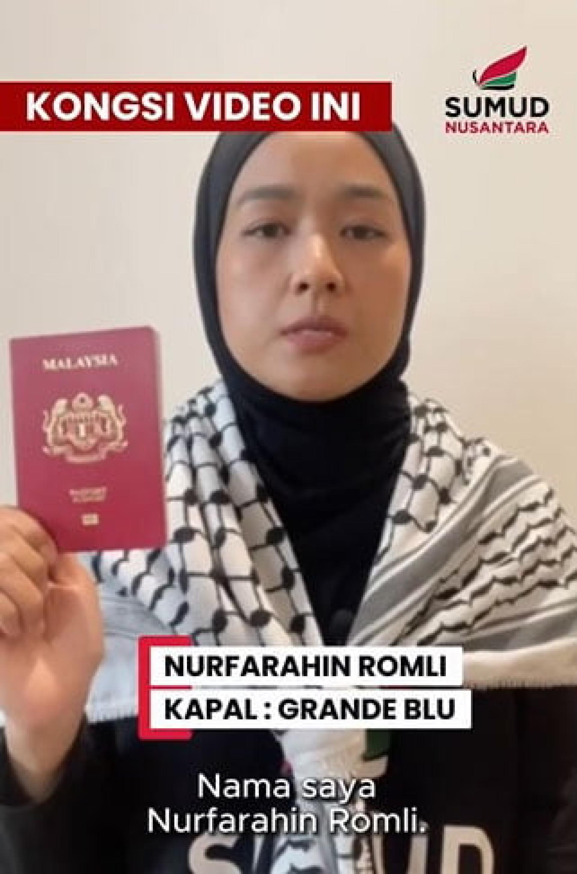 诺法拉欣珑丽(Norfarahin Romli, 亦称 Farah Lee) 在地中海R3红区海域遭以色列政权非法扣押。