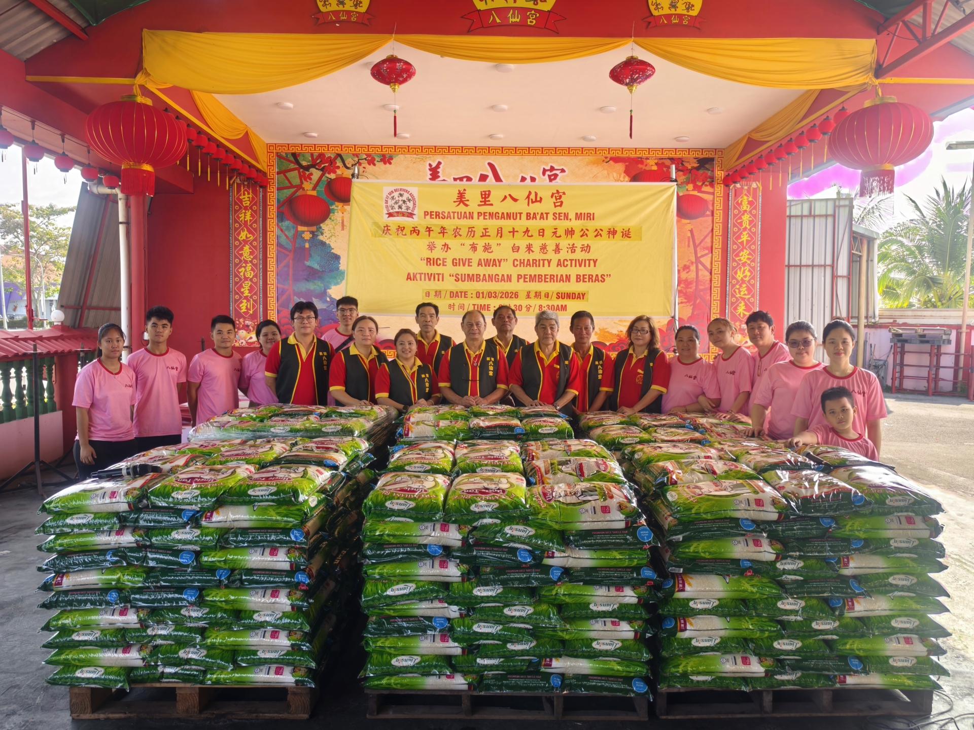 (本报美里1日讯)美里八仙宫配合丙午年农历正月十九日元帅公公神诞,今早举行布施白米慈善活动,准备600包白米,颁发给10个受惠团体,为社会弱势群体送上温暖与关怀。