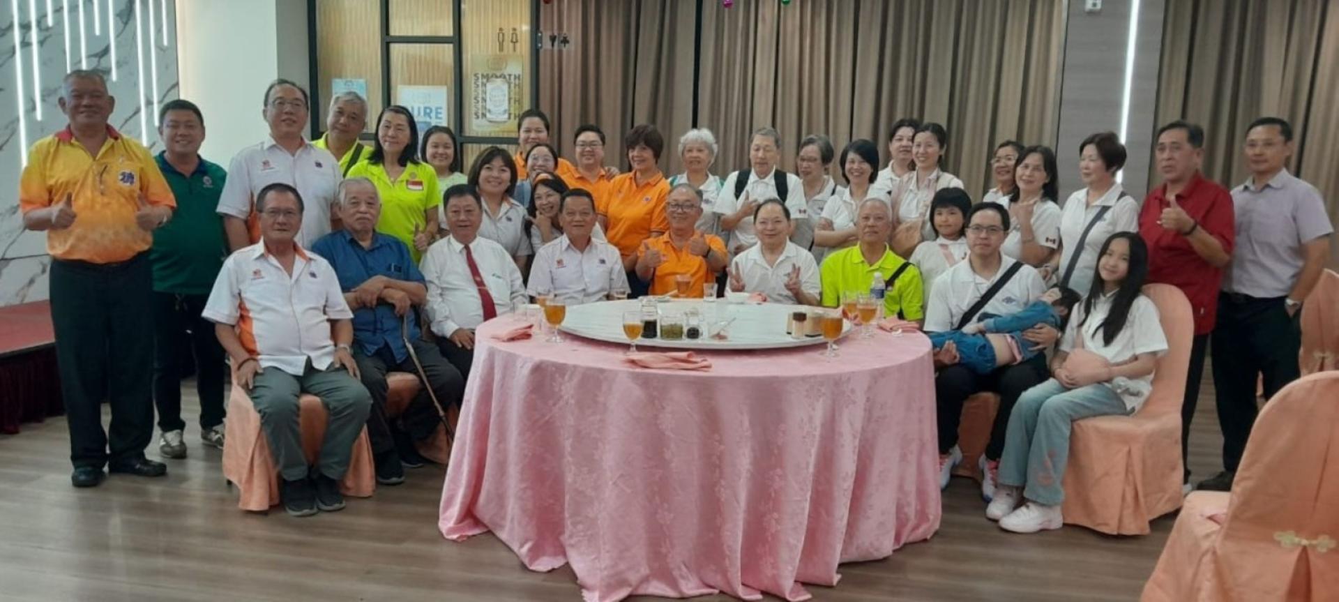 古晋德教会济兴善社德友与加拿大温哥华市德教道济紫光阁、新加坡德教紫松阁代表团晚宴交流后合影。 他表示,在砂拉越的一些德教组织,常有举办施医赠药来造福当地社群,并做出各种的善举,这是济世的情怀。值得学习。