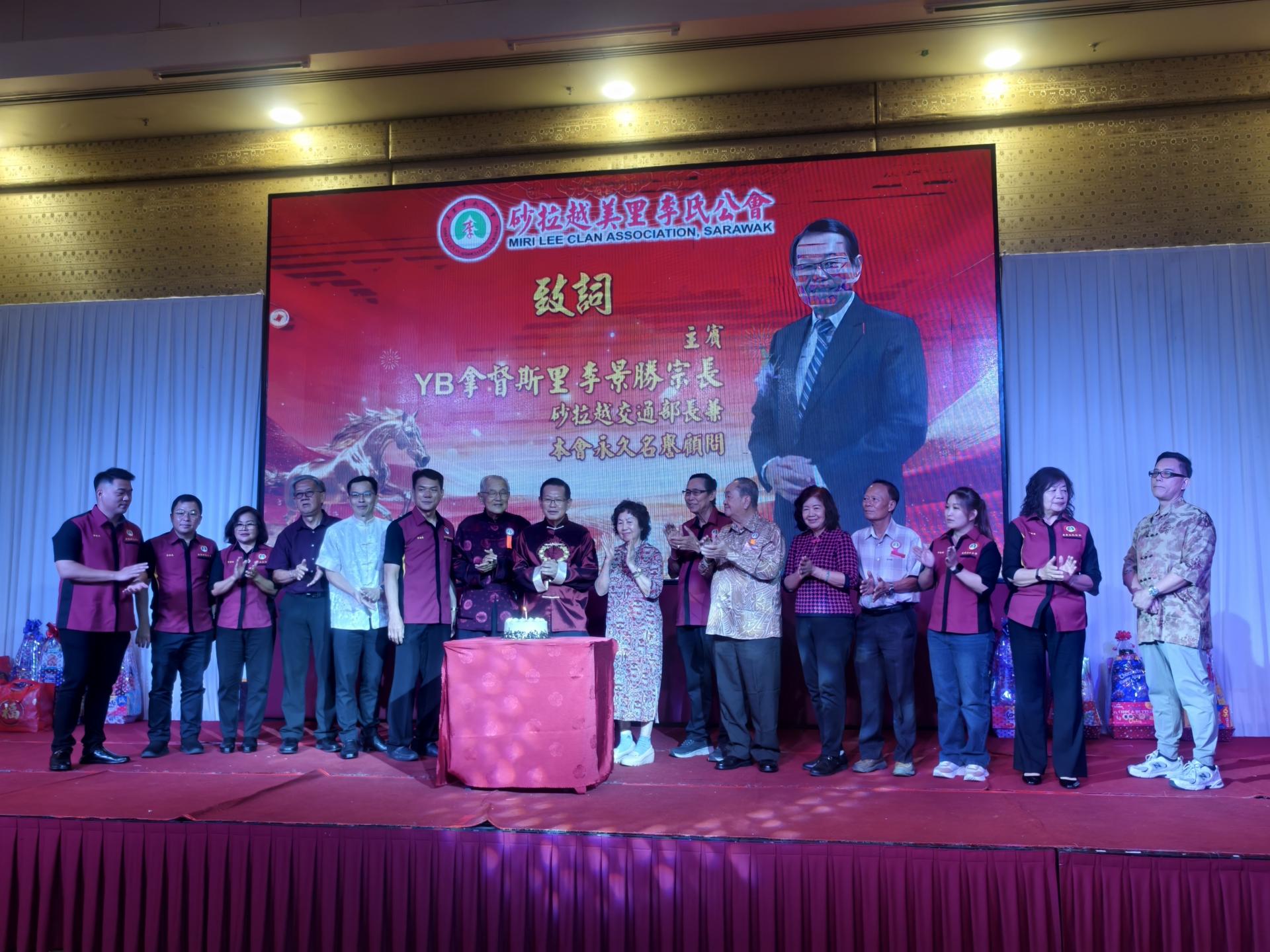 砂拉越美里李氏公会在2026年新春联欢暨敬老午宴上,为2月28日生日的主宾拿督斯里李景胜庆祝生日。
