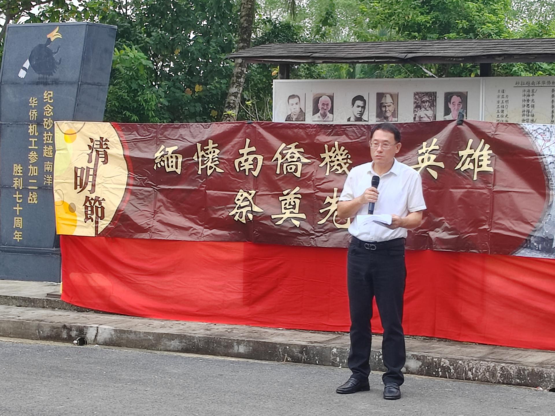 (古晋5日讯)清明时序,慎终追远;碑前肃祭,缅怀忠魂。中国驻古晋总领事馆与砂拉越华人学术研究会昨日假达万拉鲁祖师宫南侨机工英雄纪念碑前,联合举行“清明节缅怀南侨机工英雄祭奠先烈”活动。