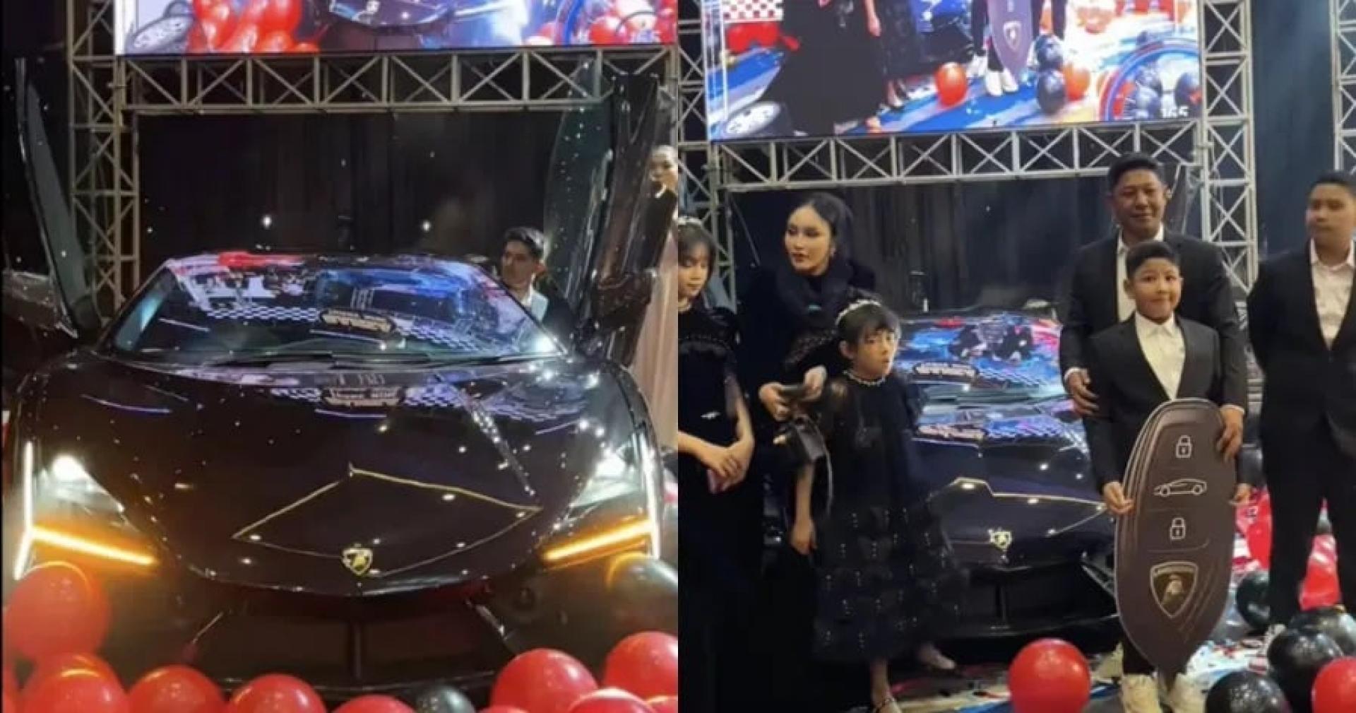 外媒报导,TRK控股公司首席执行员纳吉姆丁于,11月7日在印尼望加锡的福朋酒店宴会厅,为9岁儿子坎萨举办豪华生日派对,并在亲友和同学见证下,送上蓝宝坚尼作为礼物。