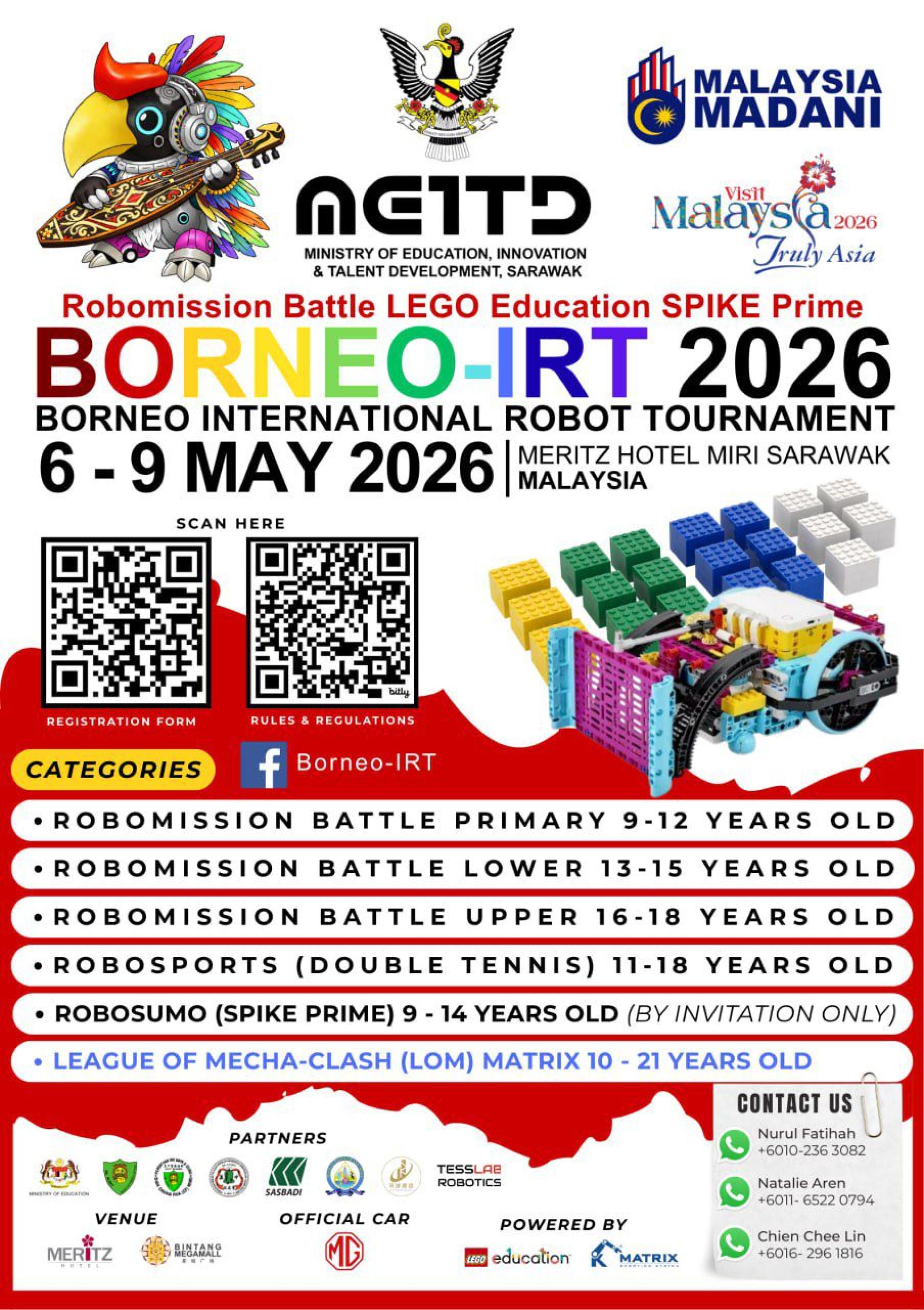 (本报美里13日讯)2026年婆罗洲国际机器人锦标赛(Borneo International Robot Tournament, BIRT)昨日在古晋正式推展,赛事定于2026年5月6日至9日,在美里美乐大酒店举行,预料将吸引来自多个国家和地区的学生参与竞技交流。