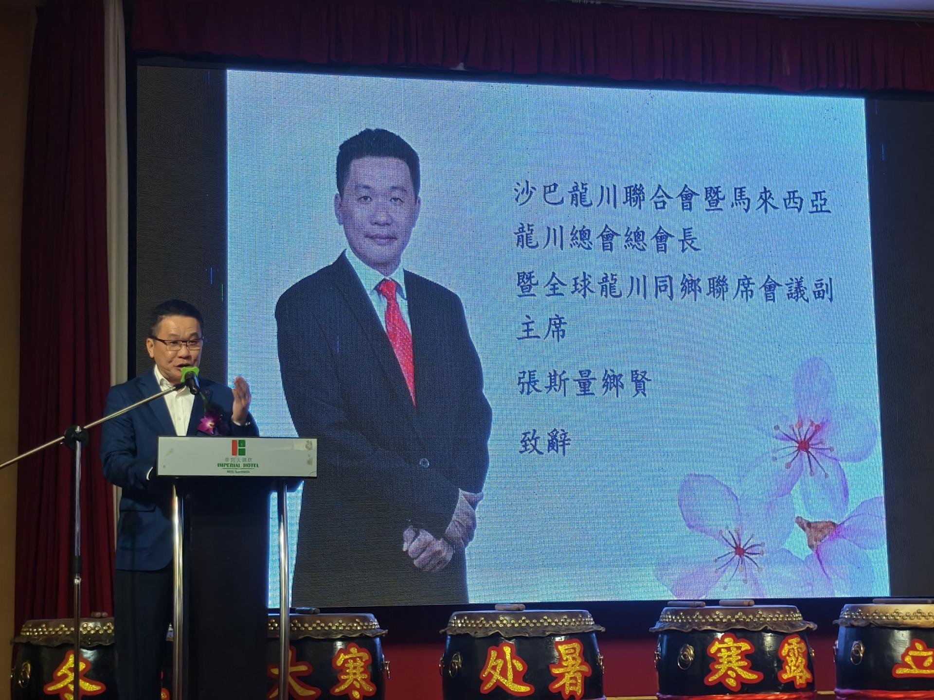 沙巴龙川联合会暨马来西亚龙川总会总会长及全球龙川同乡联席会议副主席张斯量致词。 他说,最早一批南下南洋、移居沙巴的龙川人,于1883年4月4日在沙巴古达县石码头登陆,当时属于北婆罗洲。此后,龙川乡亲逐渐散居于沙巴与砂拉越各地。如今,沙巴已成为中国境外龙川籍人数最多的地区,超过十万人之众。