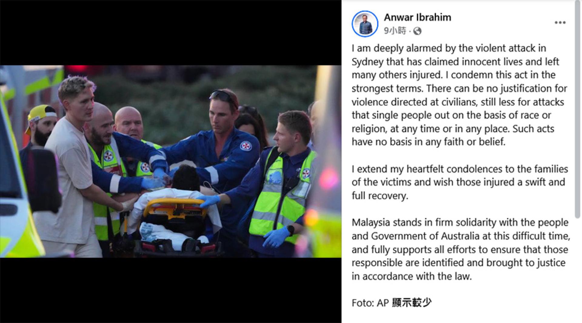 澳降半旗悼海滩枪击死者 安华谴责暴行向家属致哀