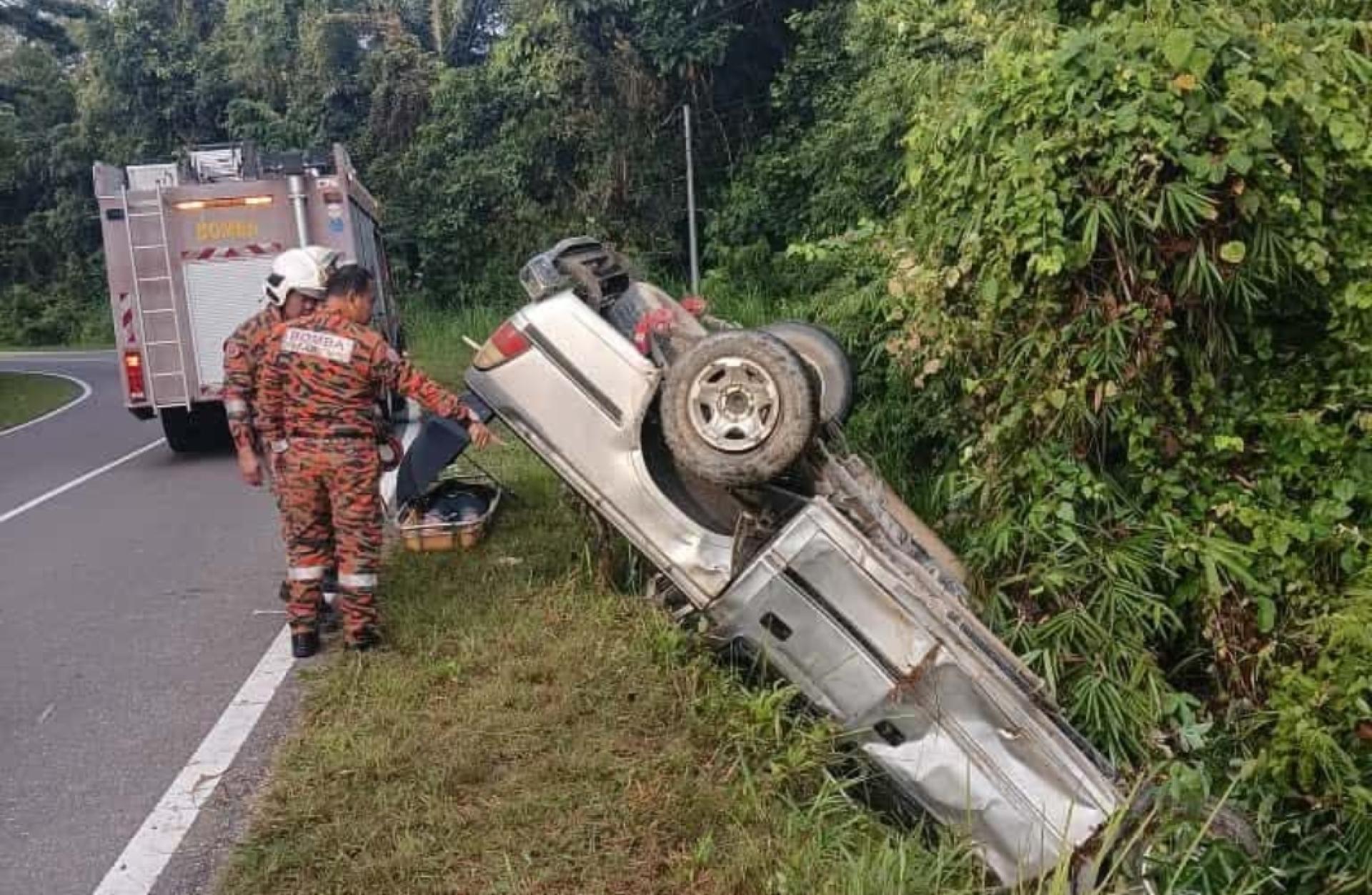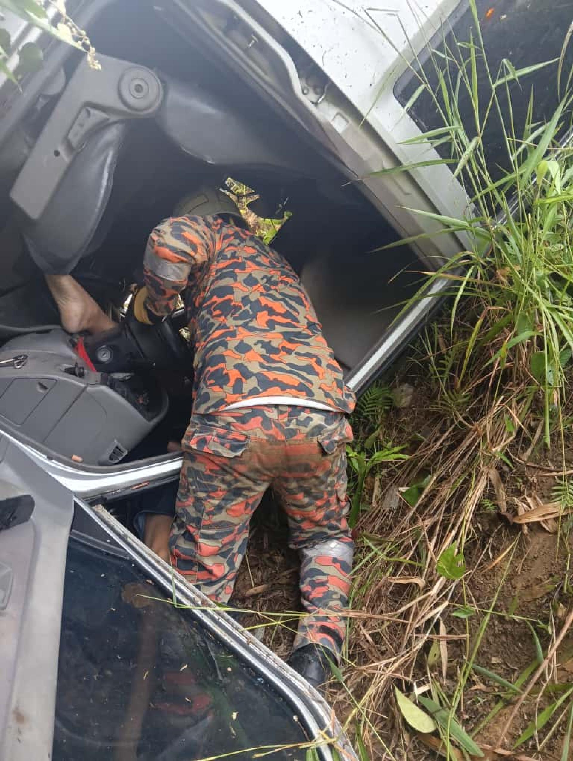 根据砂消拯局发出的文告指出,事发于清晨6时29分,当局接获投报后,立即派遣救援队赶往现场。抵达后,发现四驱车翻倒在路边草丛,男司机被困在驾驶座内,情况危急。