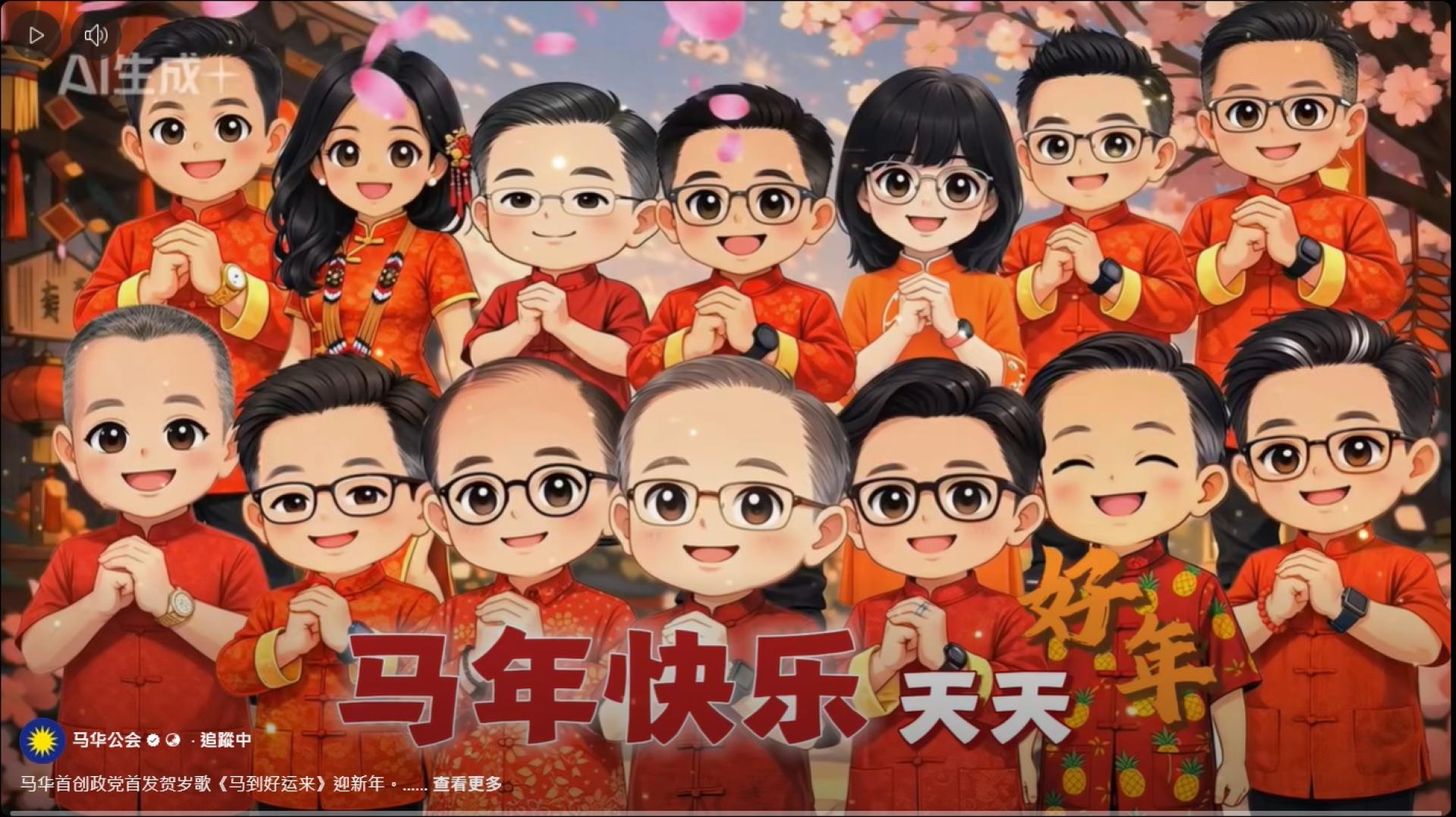 马华推AI生成新年歌《马到好运来》 卡通版魏家祥率众领袖拜早年
