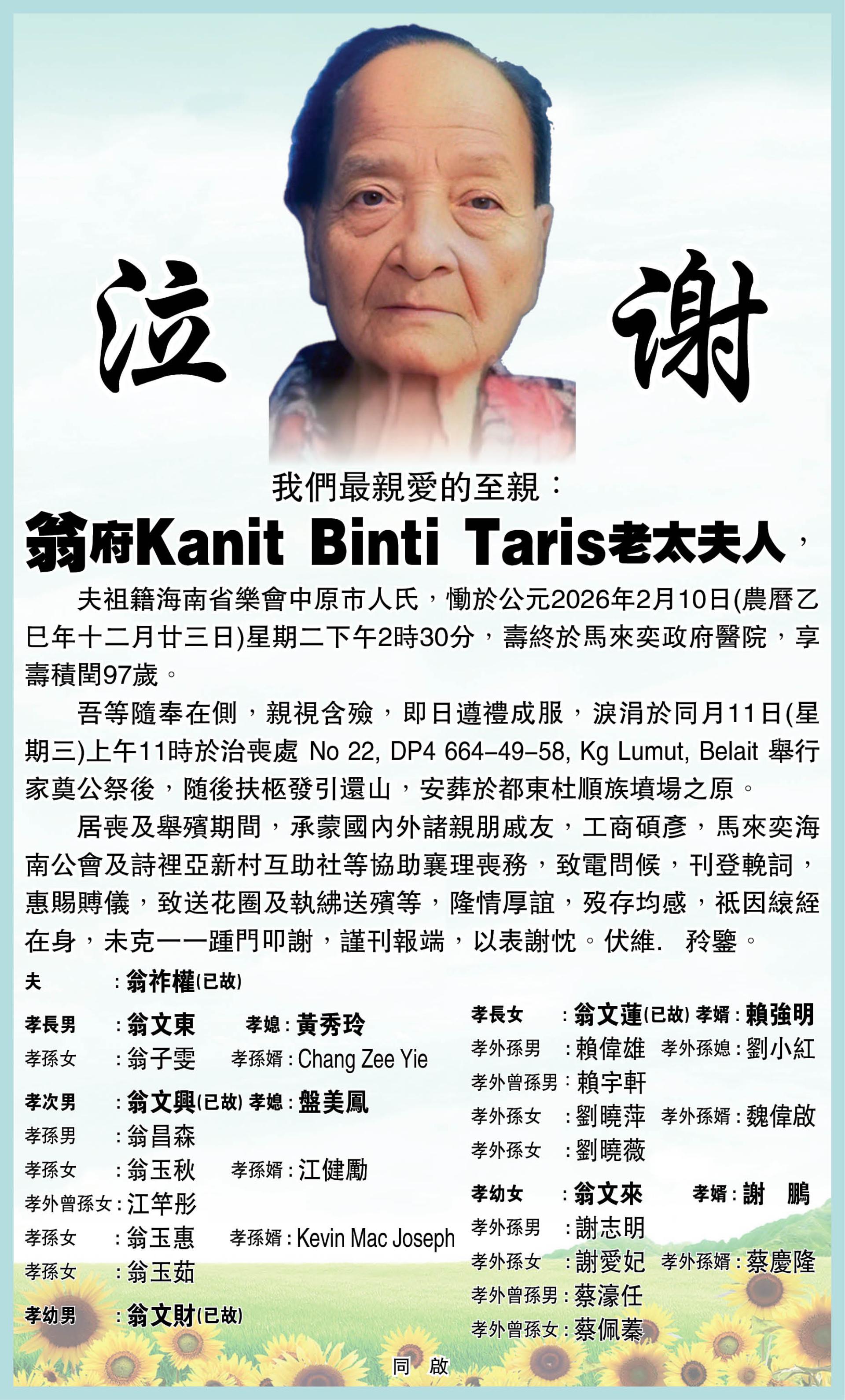 【泣谢】Kanit Binti Taris