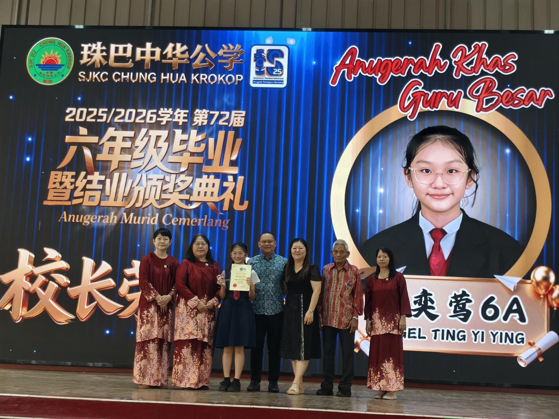 该校2025/2026学年第72届小六毕业生共有156名,典礼上除了颁发2025/2026年度毕业证书于小六生,也颁发校长荣誉奖、男女模范生、男女明日之星、男女最具潜能奖,以及班干部奖。