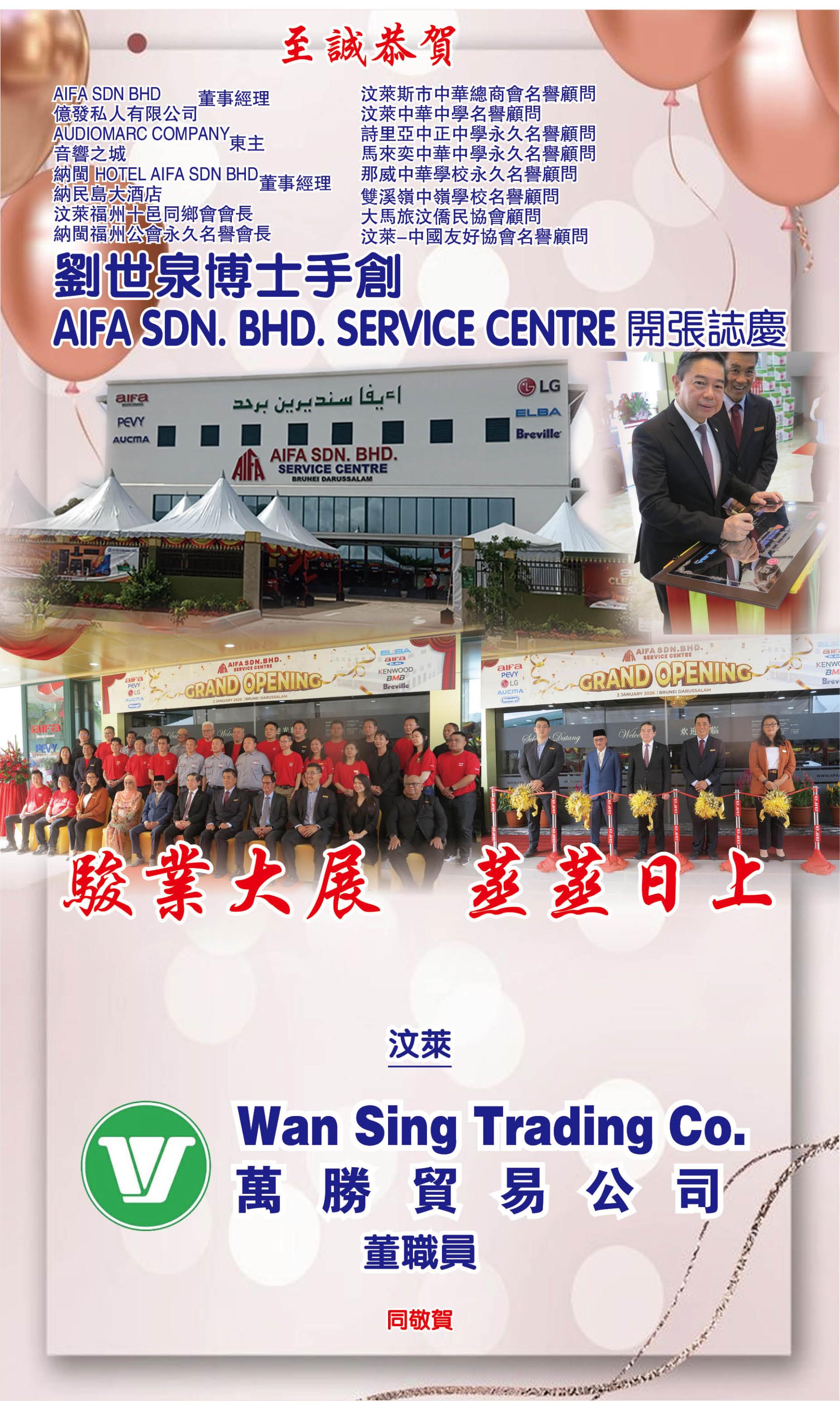 賀AIFA SDN. BHD. SERVICE CENTRE 開張誌慶