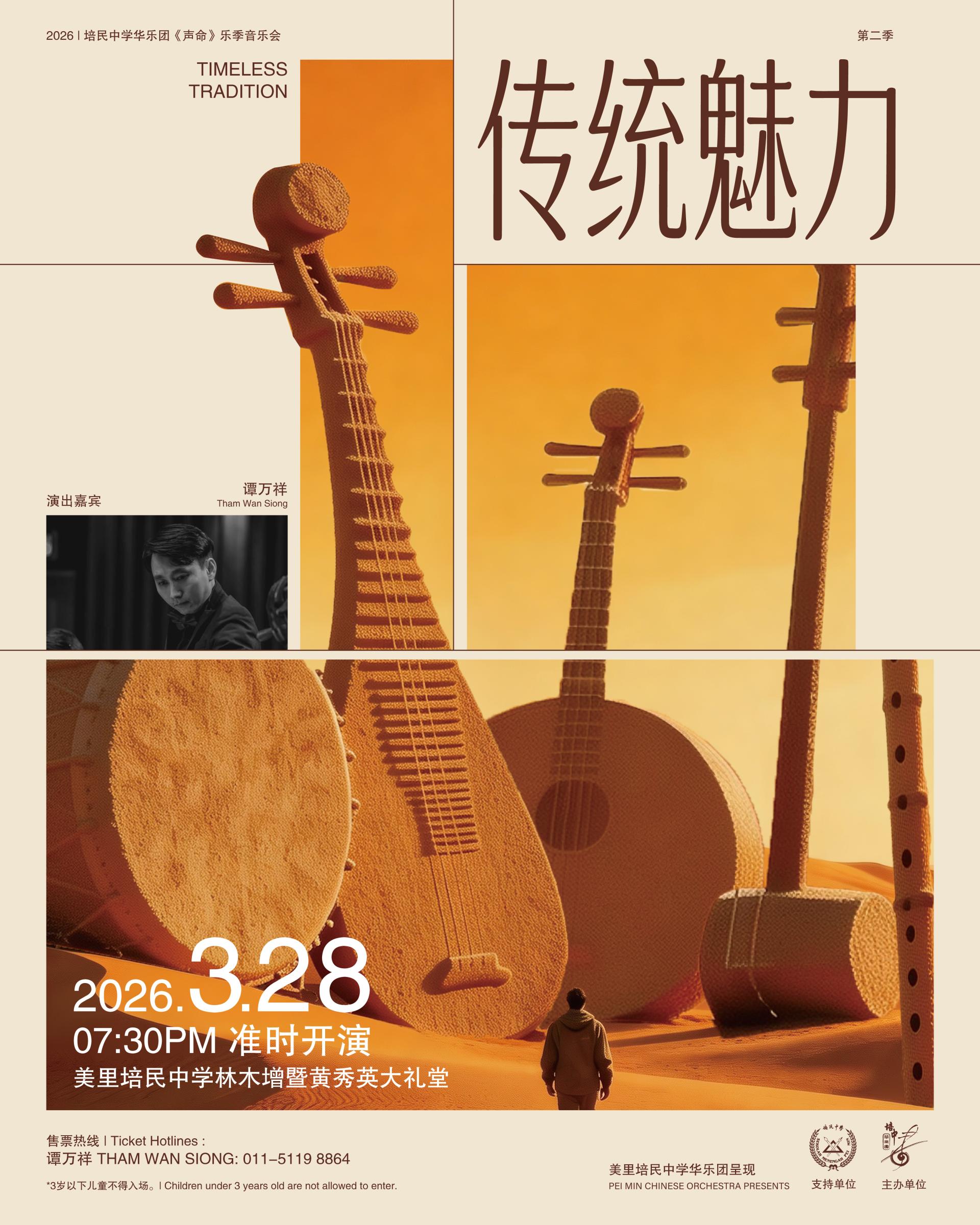 (本报美里25日讯) 继《鼓动新岁》成功为2026年《声命》乐季揭开序幕后,美里培民中学华乐团将于3月28日(星期六)晚上7时30分,在培民中学新行政与教学大楼林木增暨黄秀英大礼堂呈献第二场音乐会《传统魅力》,带领观众走进中华经典器乐的艺术世界。