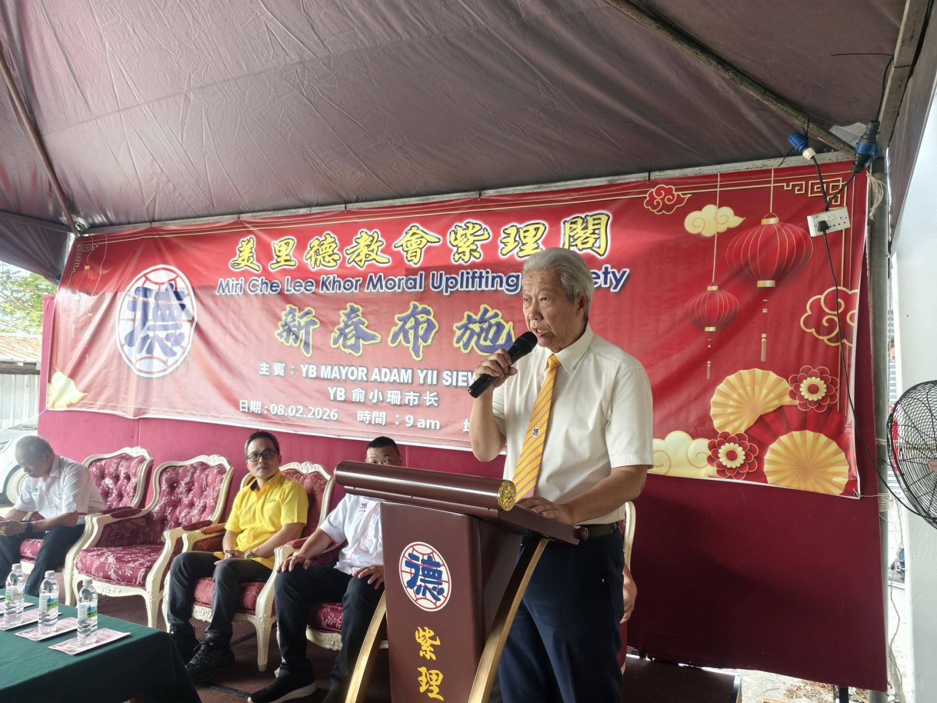 他是今早于美里德教会紫理阁所举办的2026年新春赠施活动上致词时,如是指出。