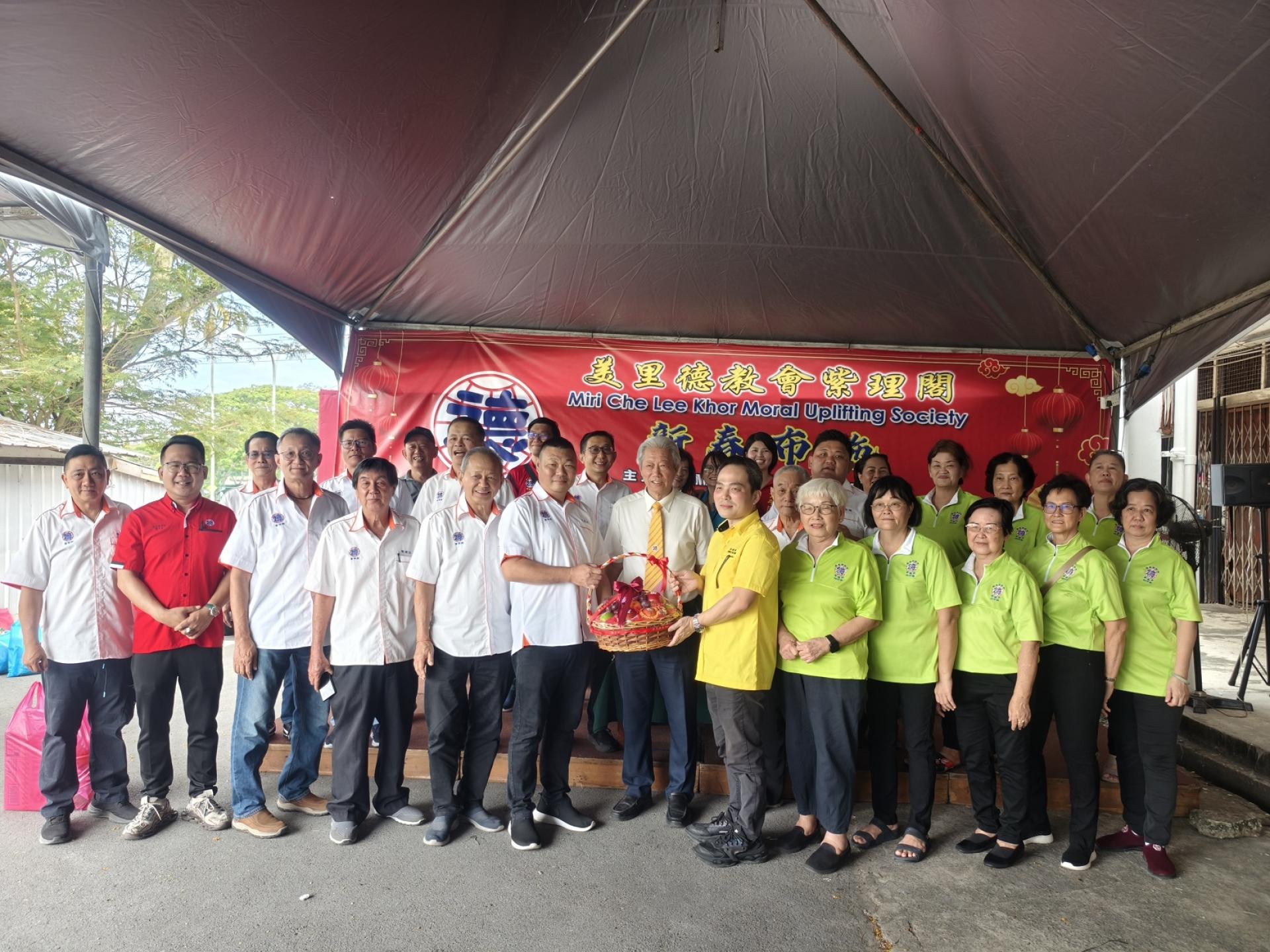 贝清湛也特别感谢并欢迎主宾美里市长兼埔奕区州议员俞小珊,惟俞小珊因公务在身赴古晋公干,不克出席,特别安排由张嵻洺代表出席主持当日上午的施赠活动,移交新年礼品与红包予100名来自家境清寒的贫老或残障人士,与他们分享佳节喜悦。