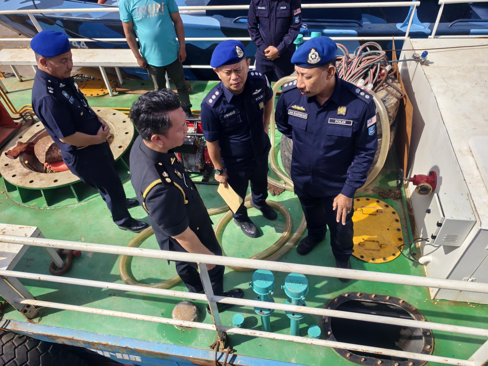 他说,该艘油槽船当时由水警巡逻艇PSC44在美里水域执行任务时发现并进行检查。经检查后发现,船上储存大量柴油,疑涉及滥用或非法储存受管制物品。