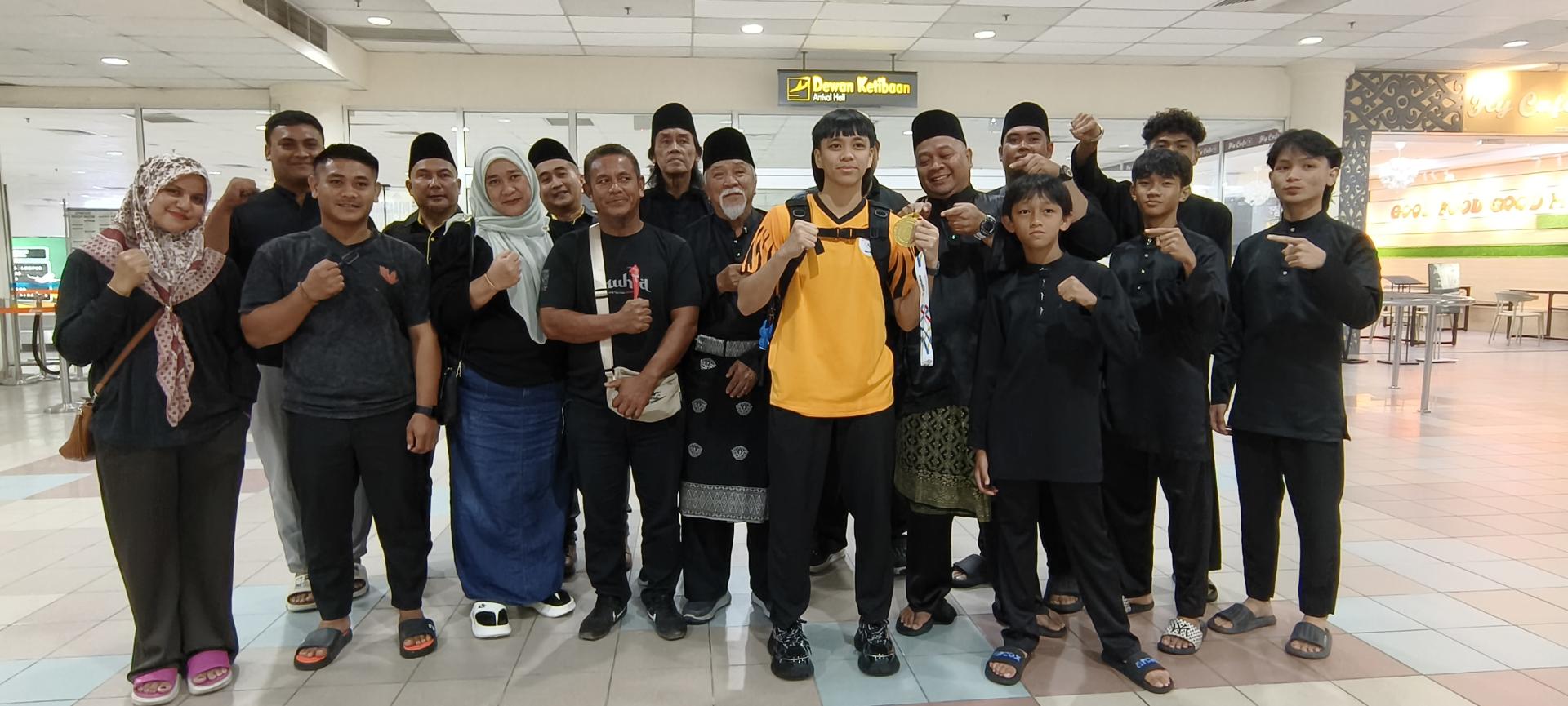 砂拉越鲁奔西拉特武术组织美里区前往美里机场迎接东运金牌女将乌米玛希达载誉返抵美里。