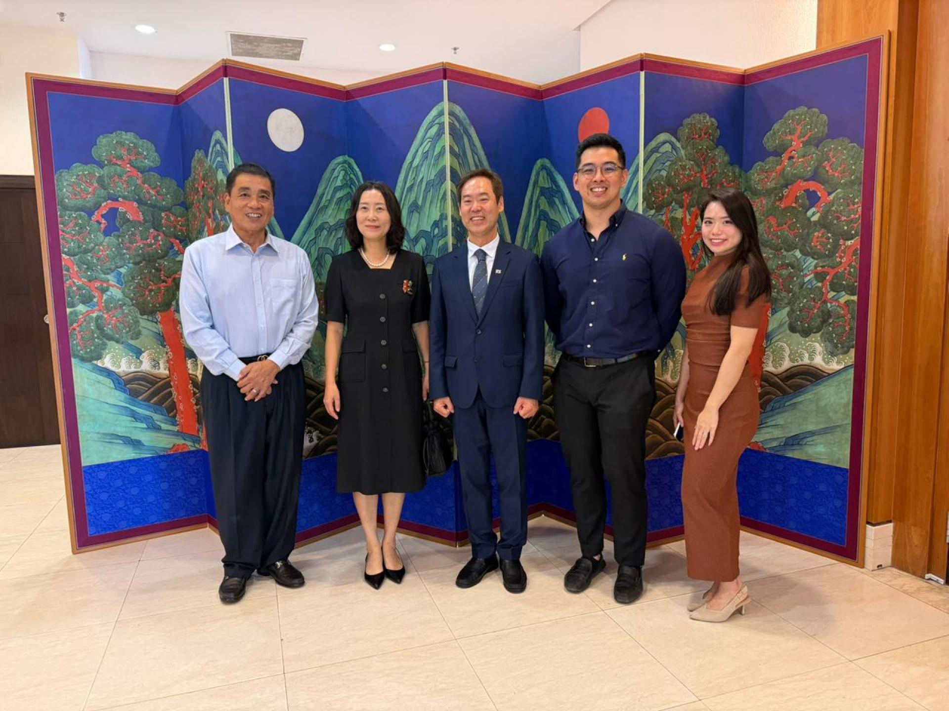 (斯市15日讯)汶莱亿发私人有限公司董事经理刘世泉博士与商界友好日前应邀出席韩国国庆招待会,共同庆祝大韩民国国庆日,并与多国外交代表及企业界人士交流互动,深化汶韩两国在经贸与文化领域的友好合作关系。