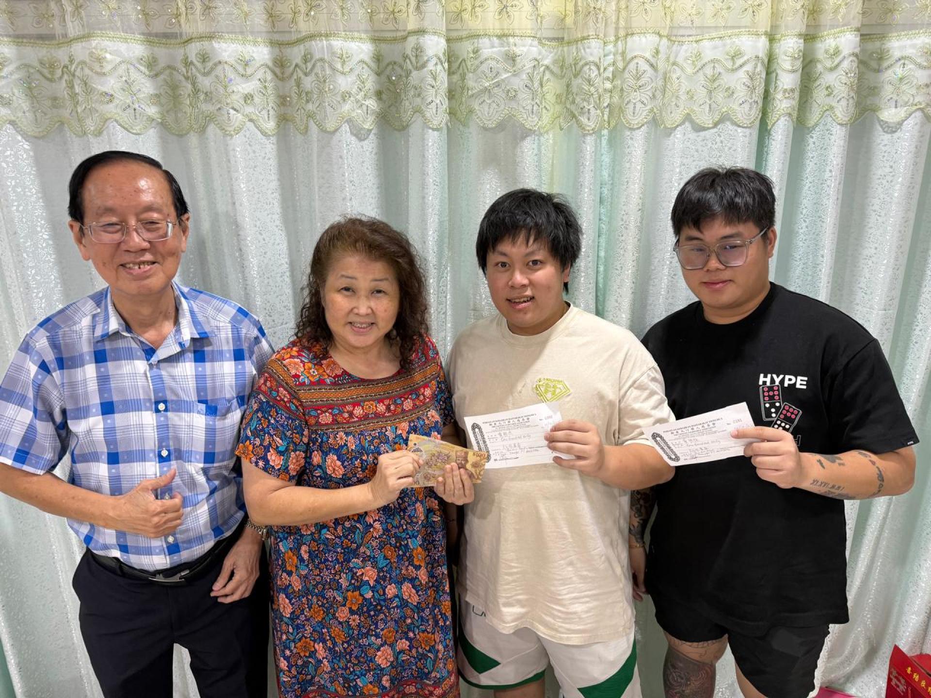 100元:Sally Saloon、黄联胜、黄联杰、Pang Bae Tee合家、Lau Kui Kian、丘贵强;