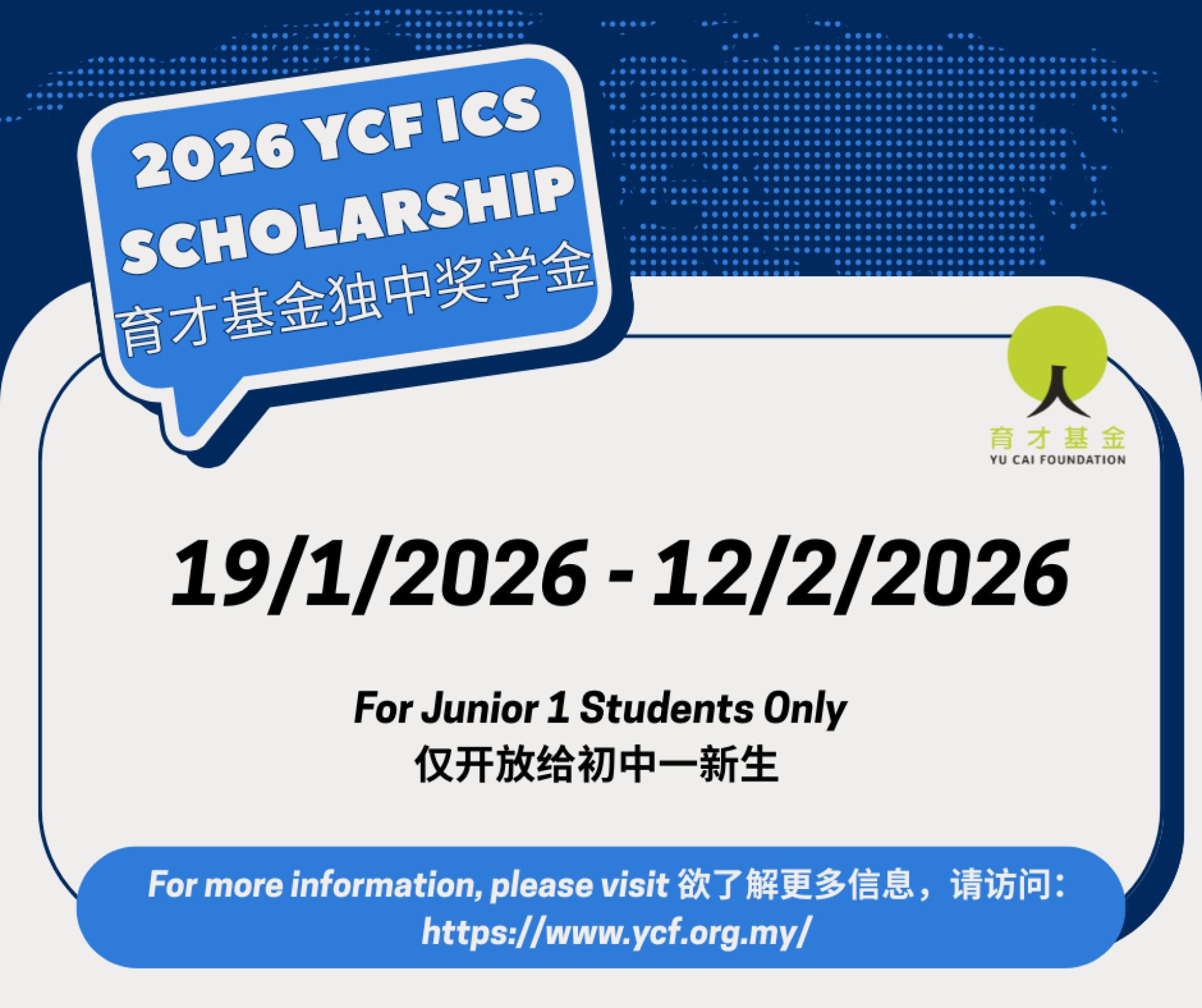 育才基金2026年独中奖学金线上申请,于2026年1月19日开放至2026年2月12日。