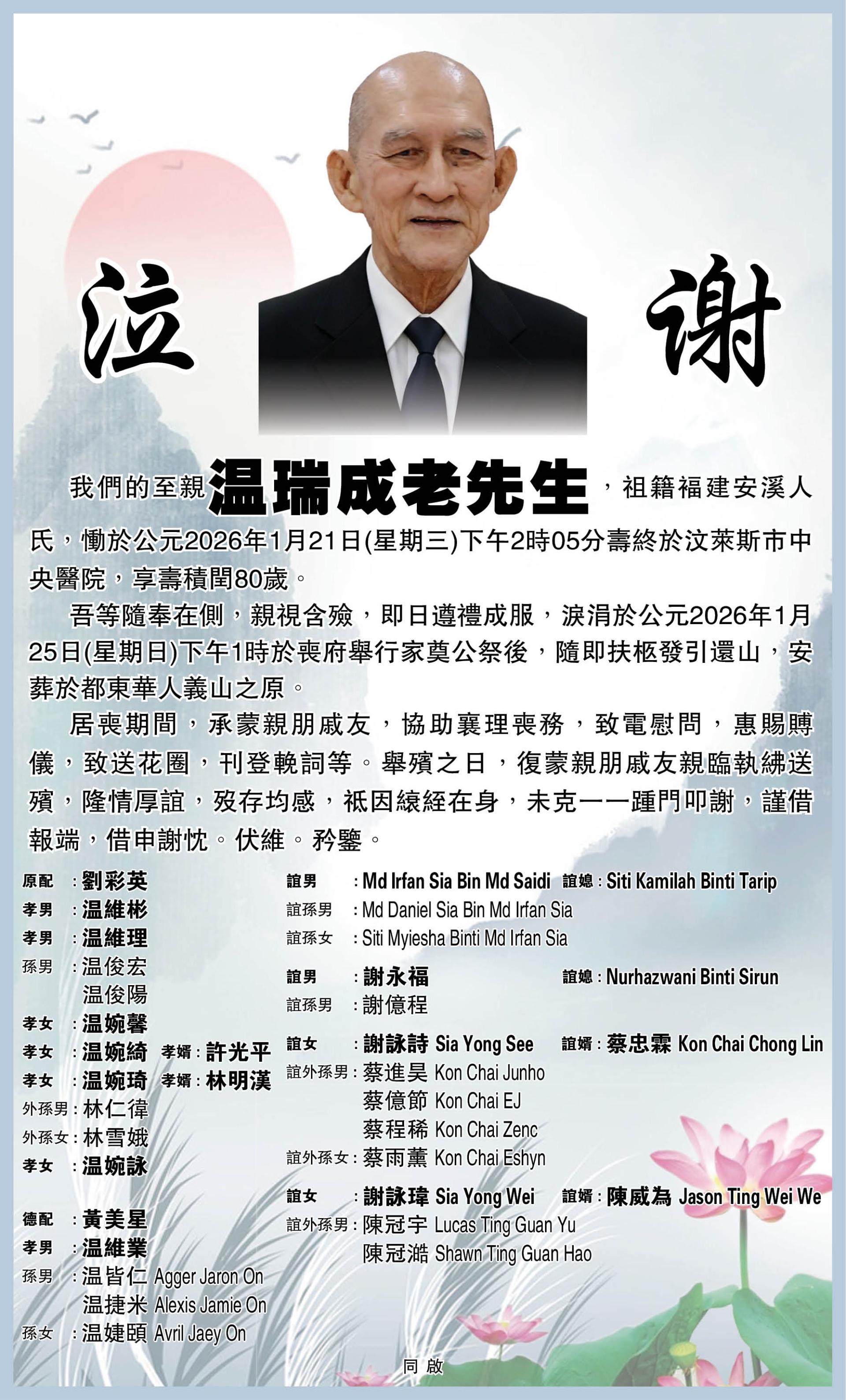 【泣谢】溫瑞成