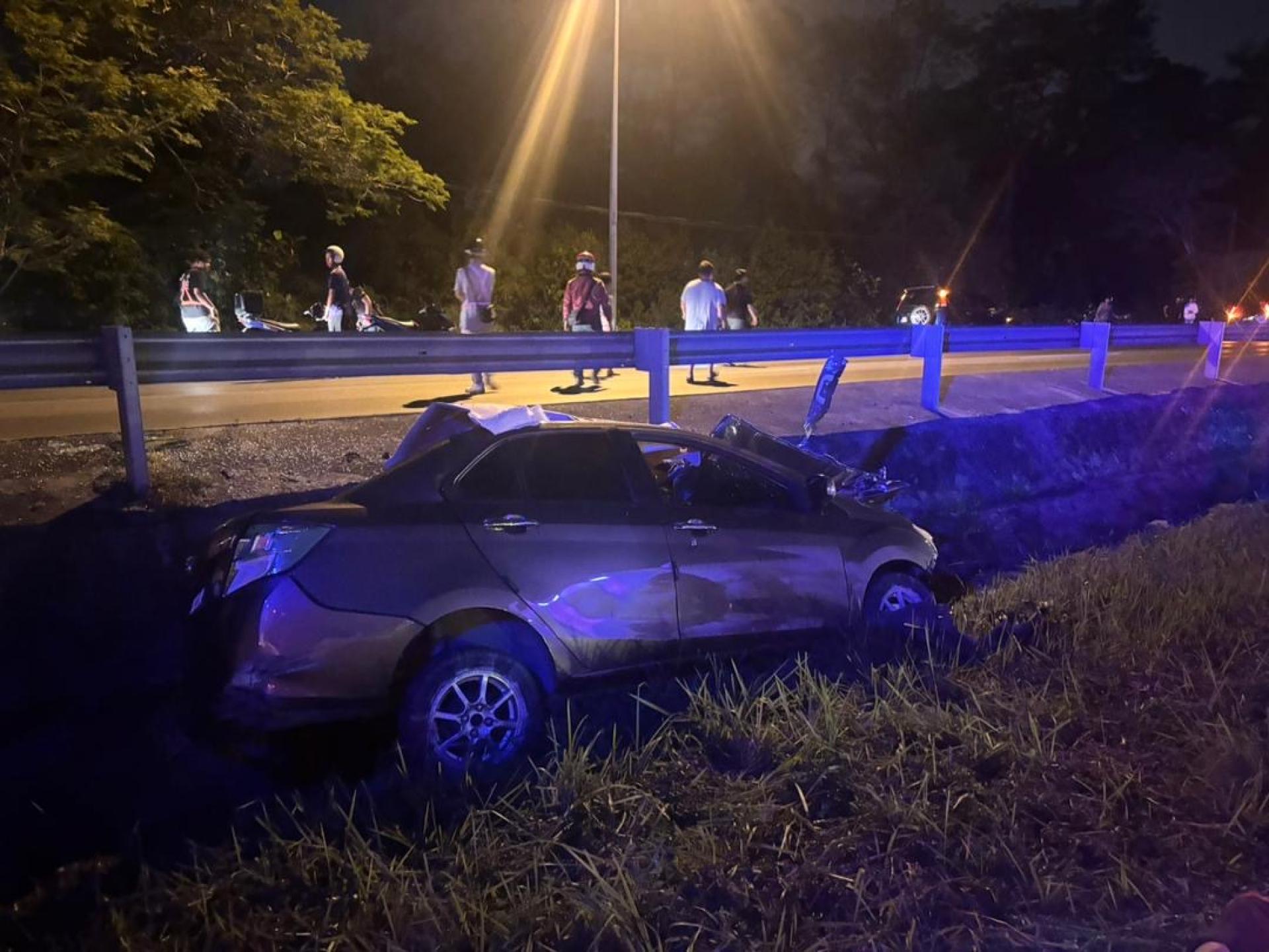 消拯人员抵达时发现,一辆第二国产轿车贝扎疑失控自撞路肩。现场一名伤者已由民众在消拯队抵达前救出,另一名男子则受困车内。