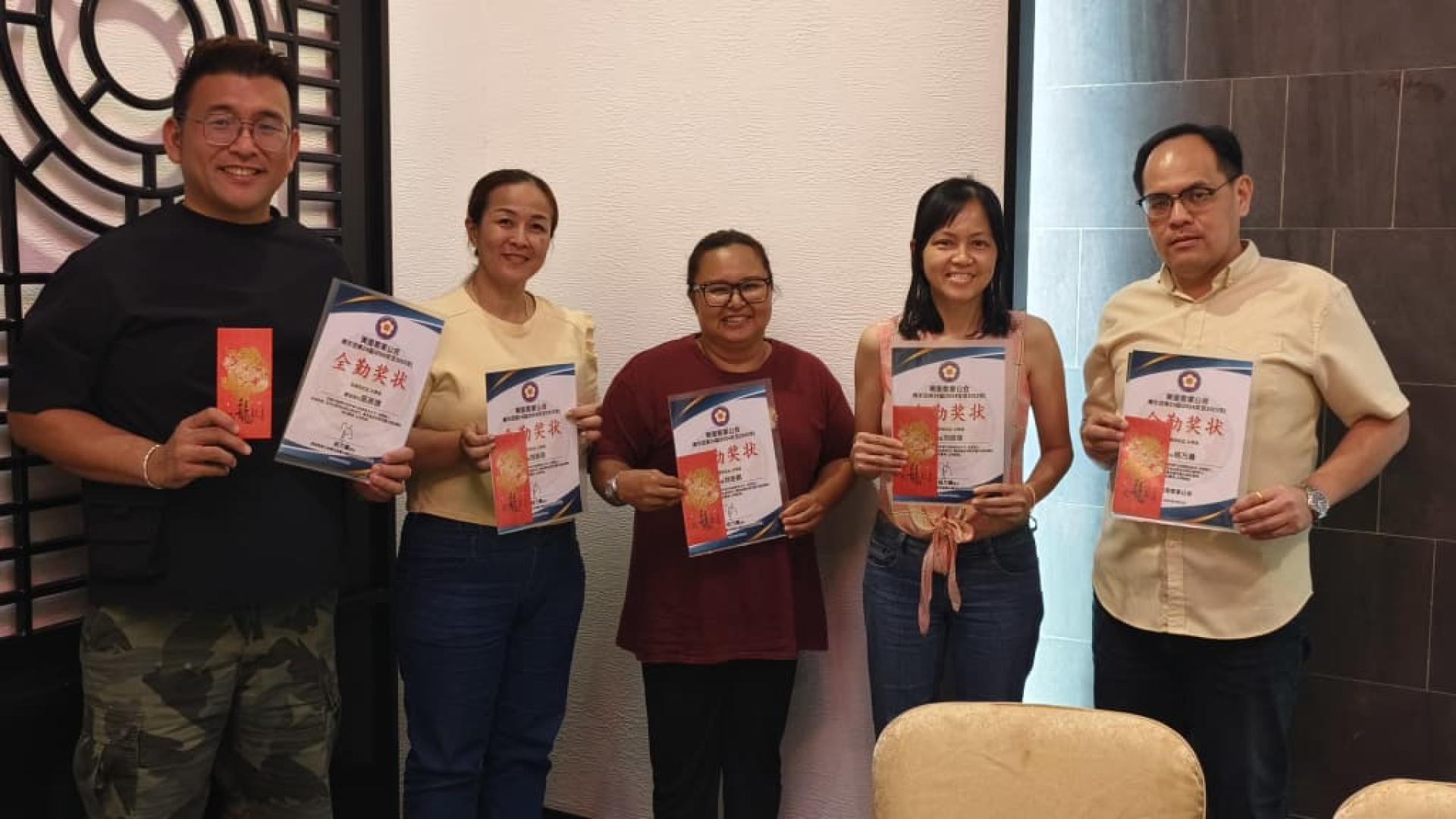 其中,全勤奖(100%出席率)得奖者包括该会青年团署理团长陈政锖、副团长刘丽君、财政刘丽珠、团委刘丽诗、团委刘佑娟及团长杨万勇。特优奖则由青年团少年组主任兼前团长刘丽美、资讯主任周俐妤及福利主任黄小玲获得。