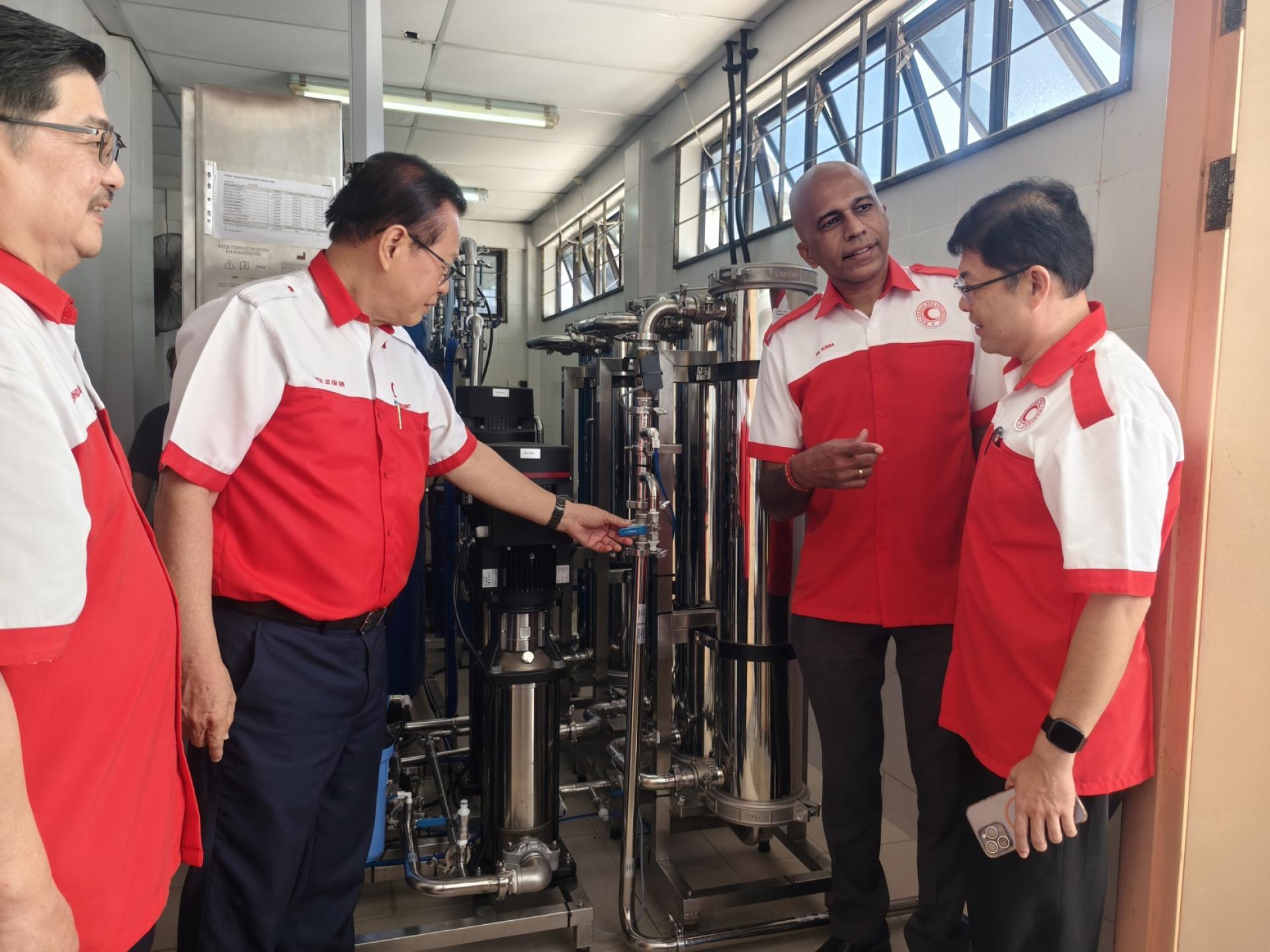 李景胜(左2)巡视并检查检查反渗透(R.O.)水处理系统。