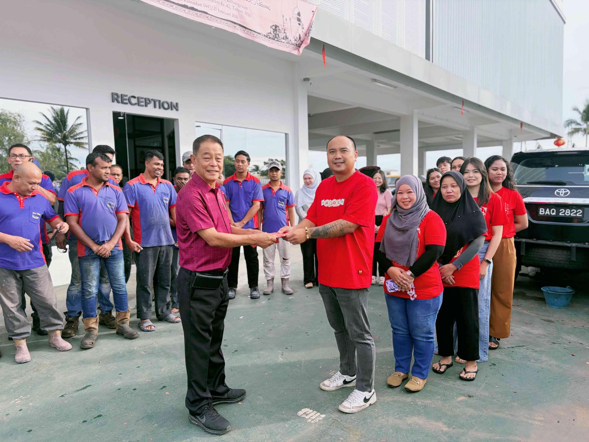 随后,他向员工派发新春红包(angpow),传递新春祝福与关怀,现场气氛温馨有序,洋溢着浓厚的新年气息。