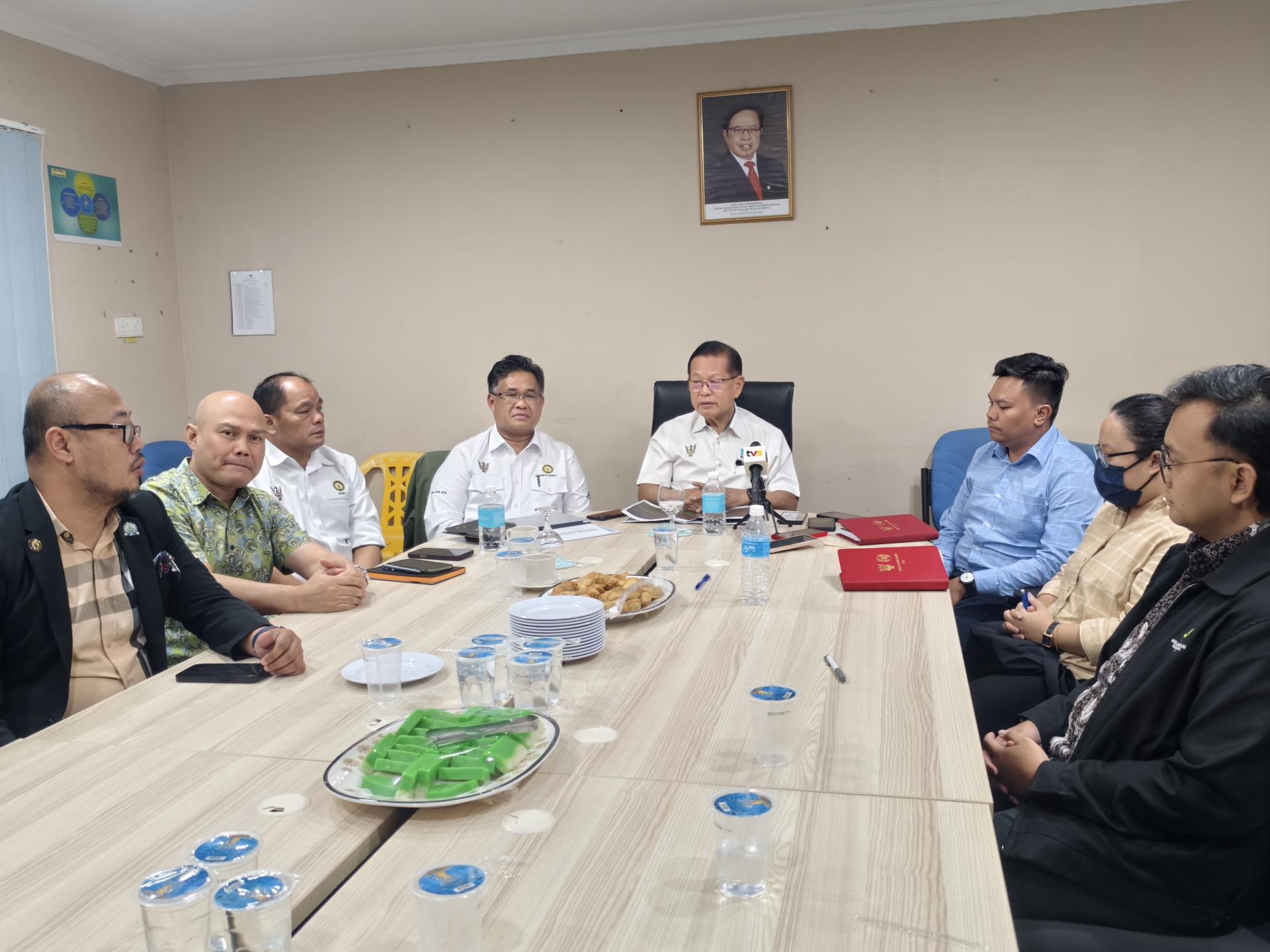 李景胜(中)主持联席会议,与砂拉越水利灌溉局、公共工程局及美里市政局官员商讨甘榜巴杜沙都海岸侵蚀及多区排水沟改善对策。
