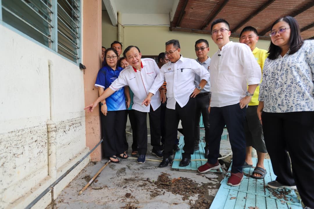 教育部副部长黄家和视察曼绒县水灾灾情,紧急拨款共10万令吉予受严重水灾波及的民德华小与爱大华华中进行维修。