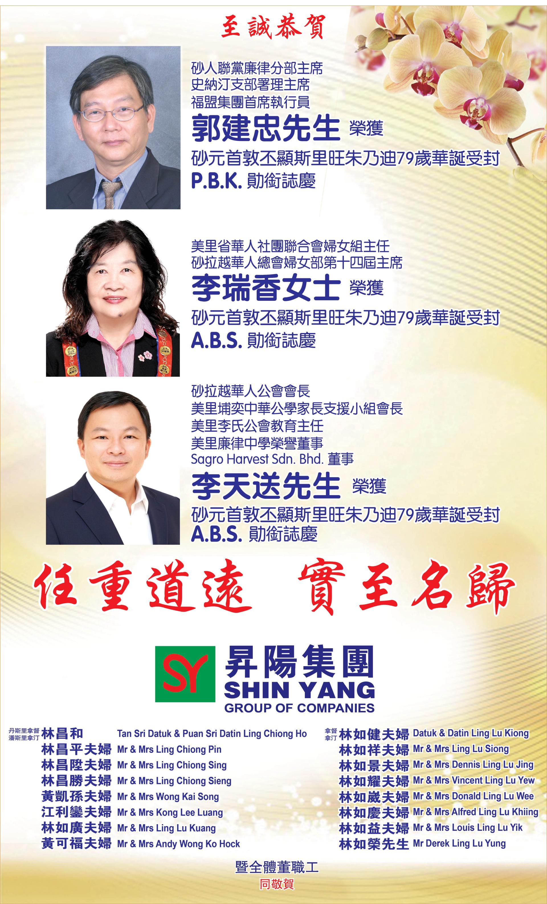 【贺词】郭建忠先生,李瑞香女士,李天送先生荣获勋衔志庆