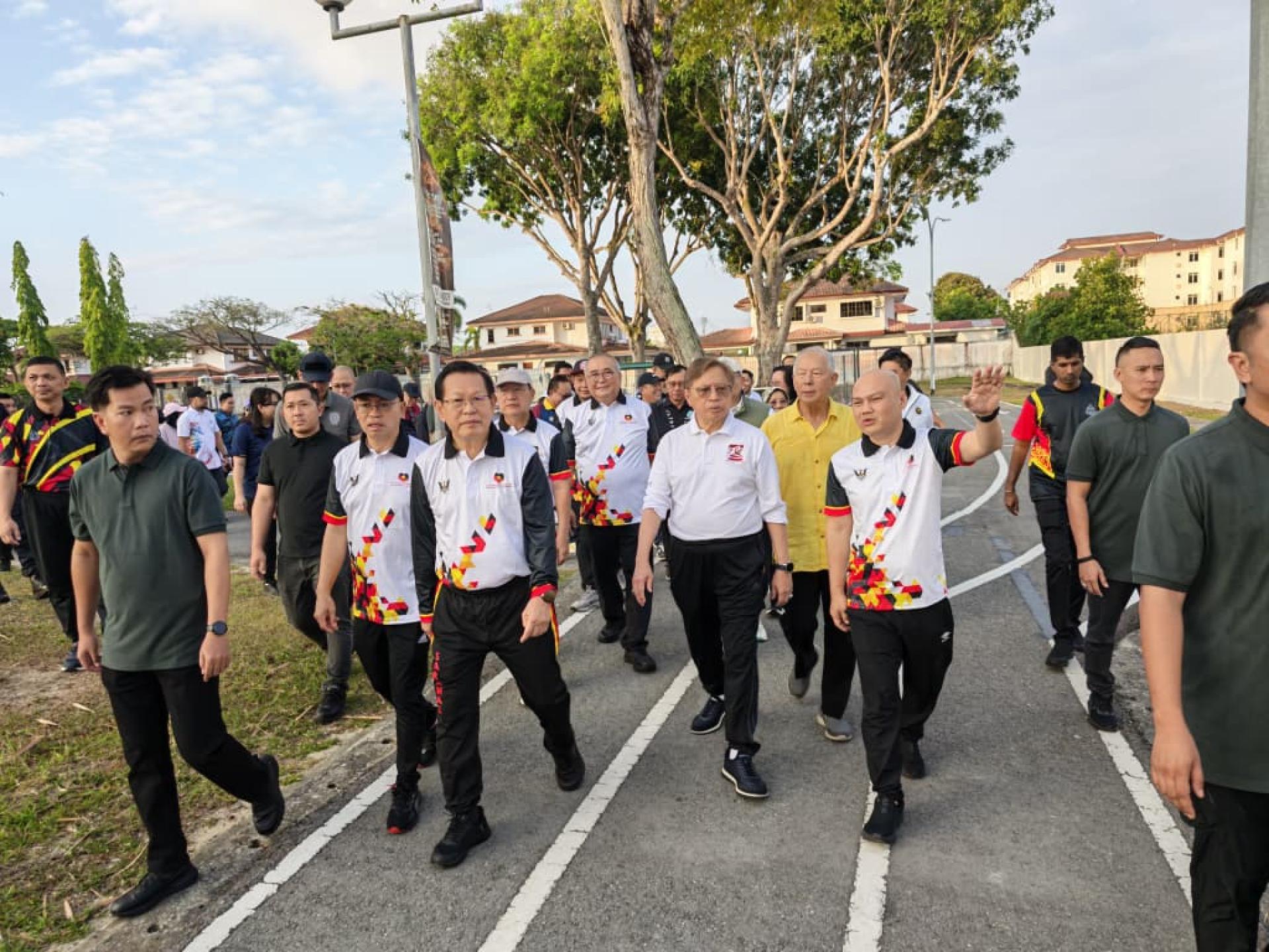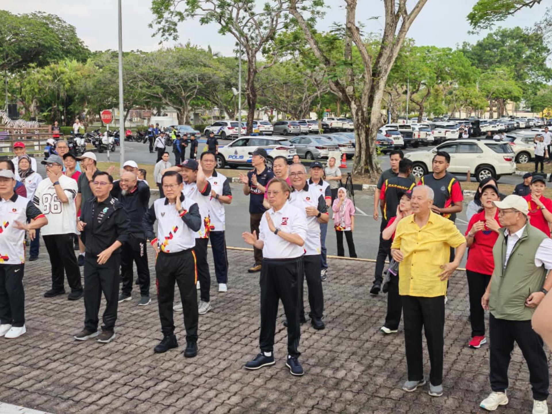 (本报美里25日讯)砂拉越总理拿督巴丁宜丹斯里阿邦佐哈里今早偕多名砂正副部长及代议士,前往美里人造湖公园参与晨跑活动,并顺道了解园内各项设施与建设情况。