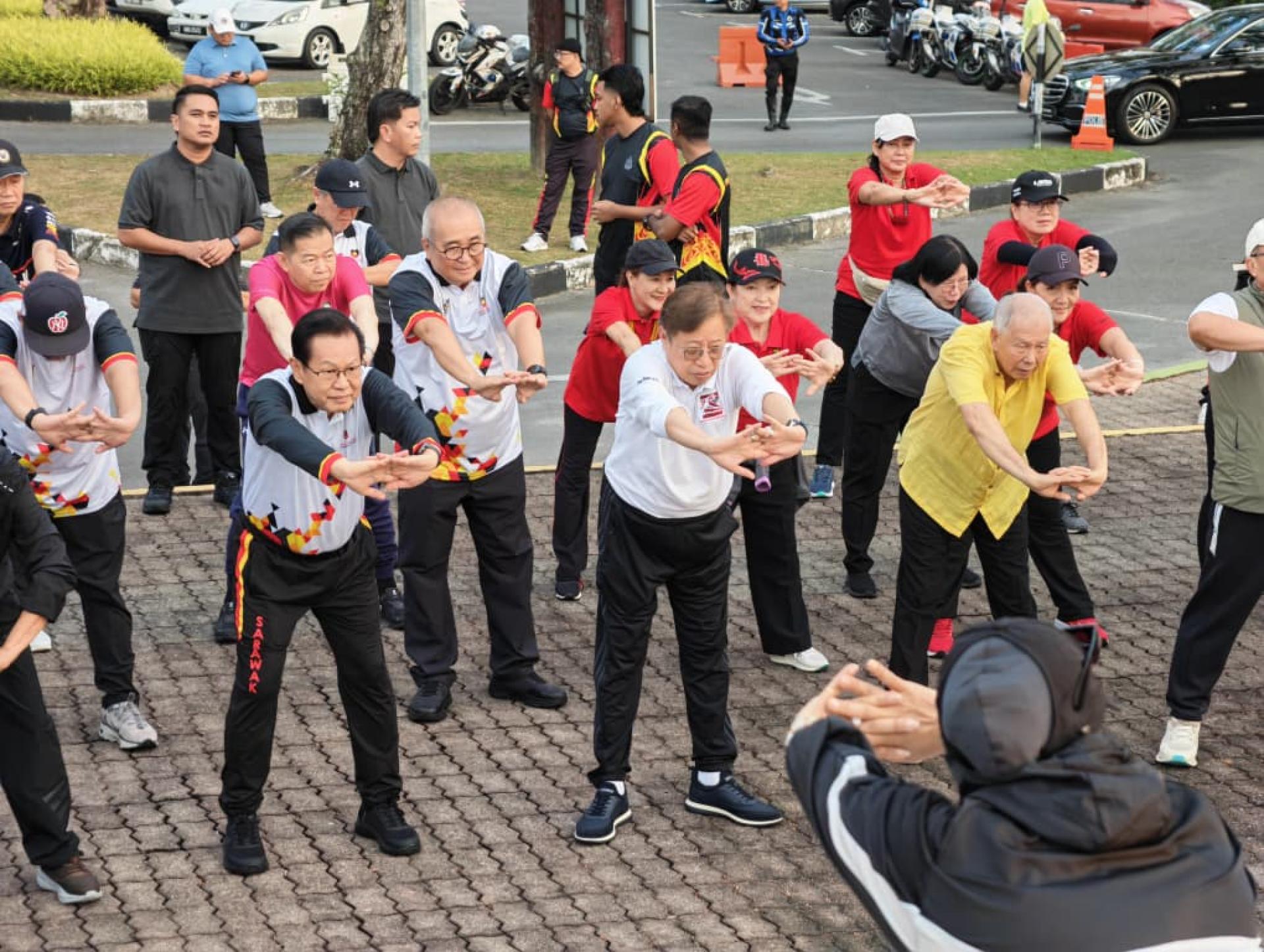 在晨运过程中,众人与在场民众打成一片,一同参与步行、晨跑及广场舞等活动,现场气氛轻松热络,展现亲民作风。