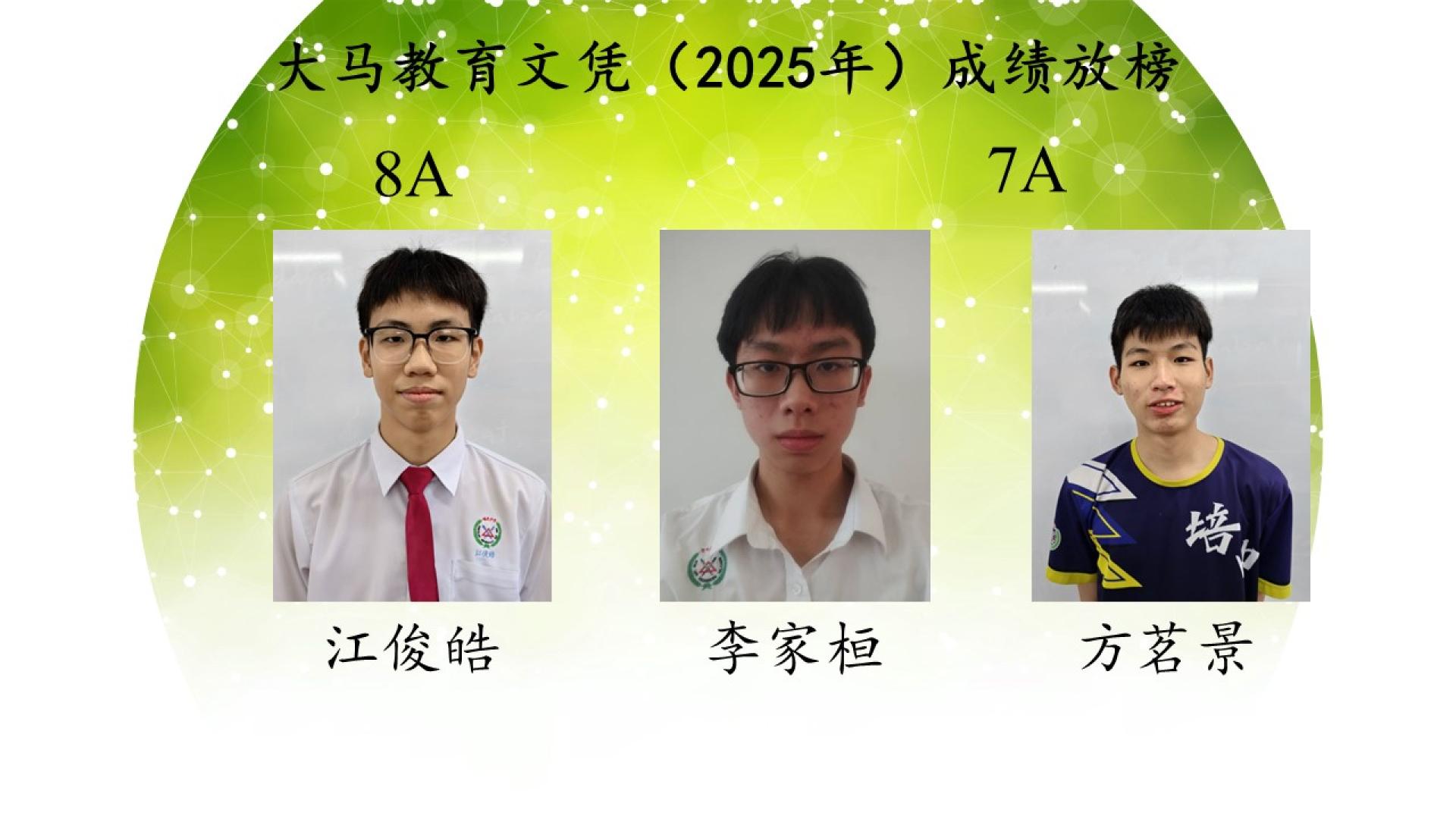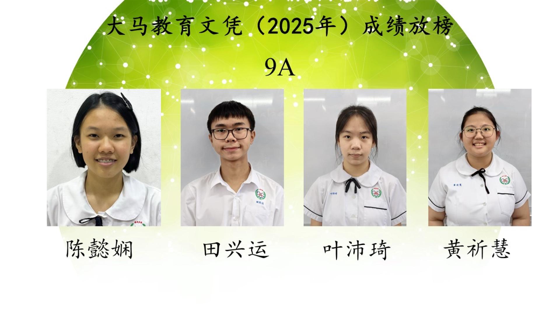 陈懿娴、田兴运、叶沛琦、黄祈慧考获9A;江俊皓考获8A;方茗景、李家桓考获7A;刘慧妍、陈睿宜考获6A。