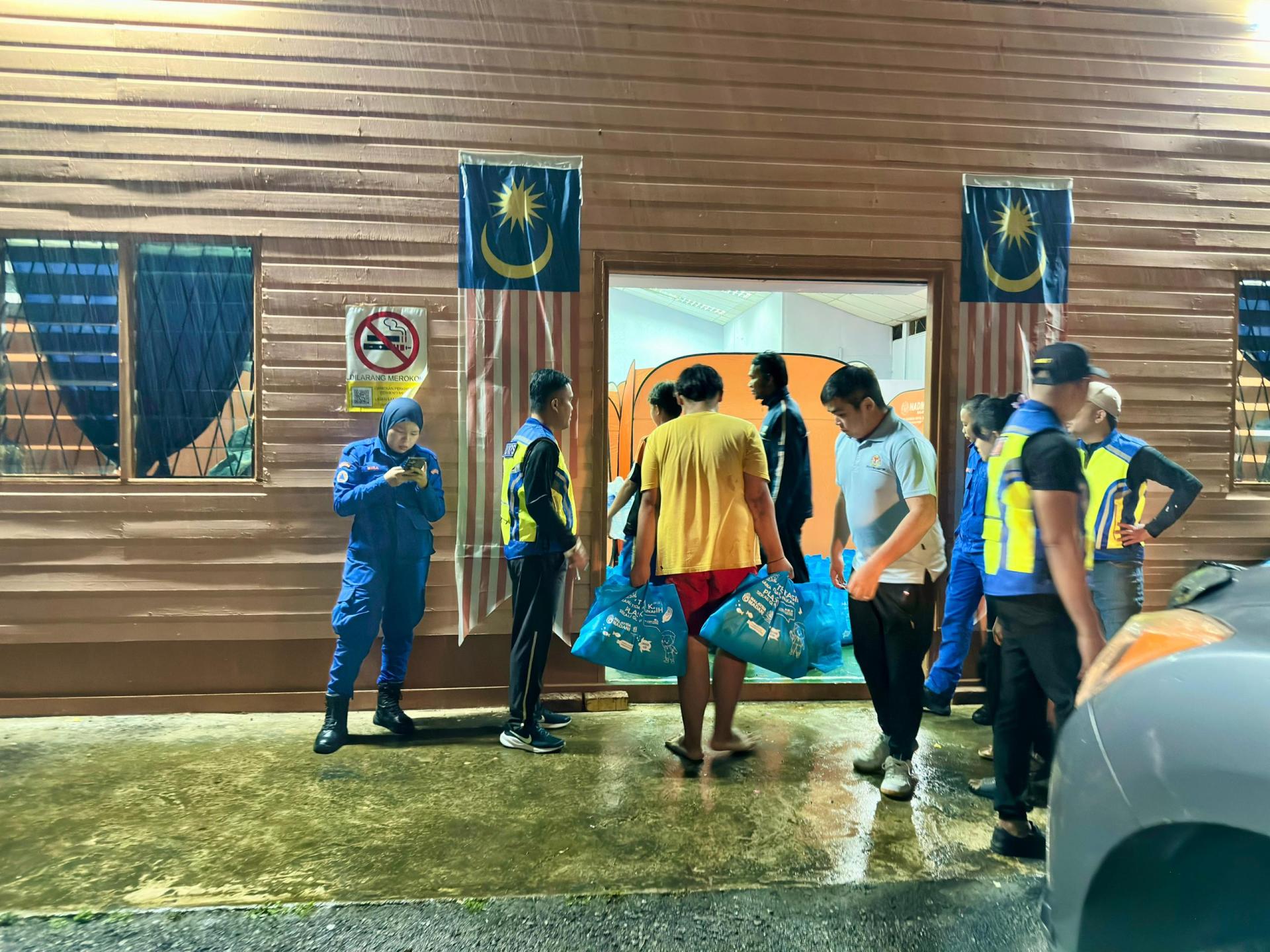 美里國會議員送援 疏散中心派糧食