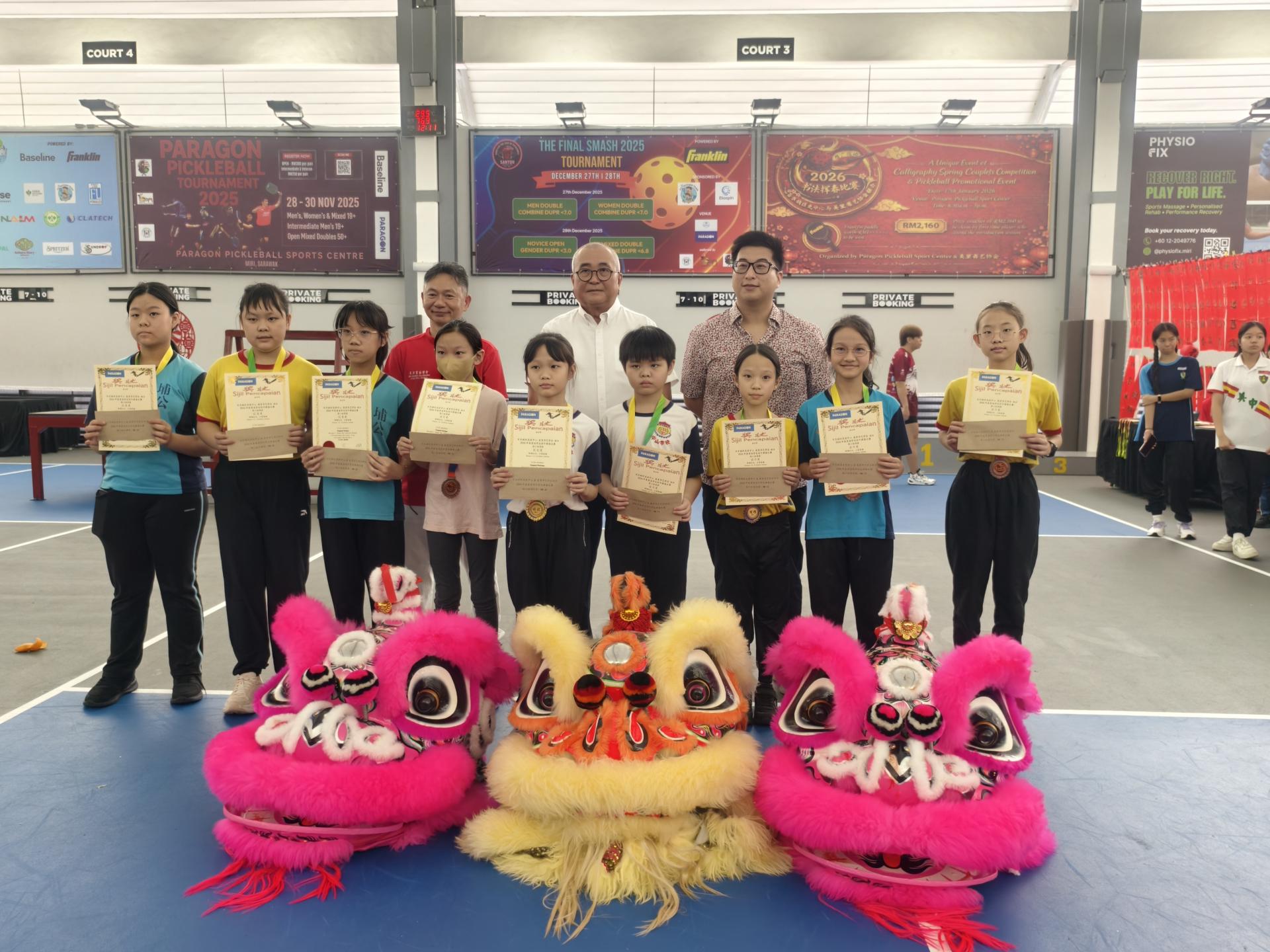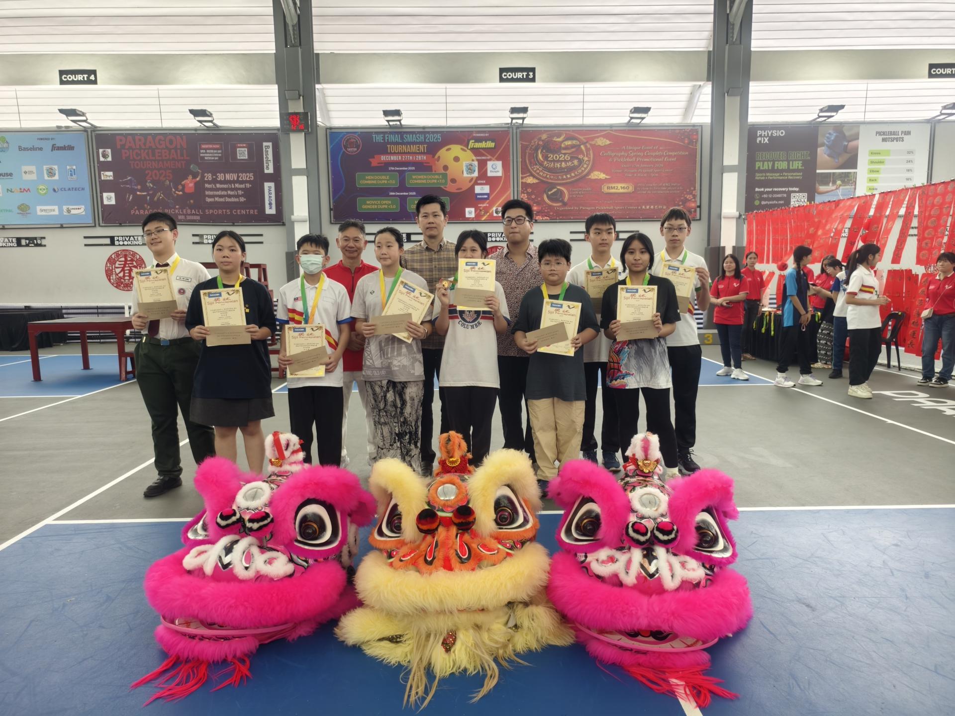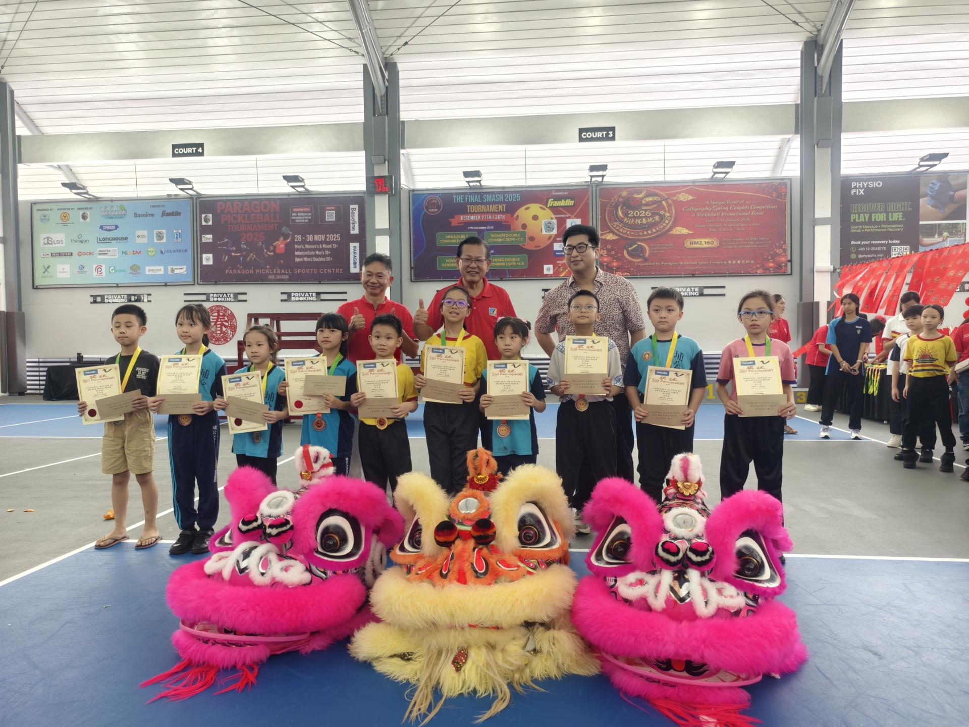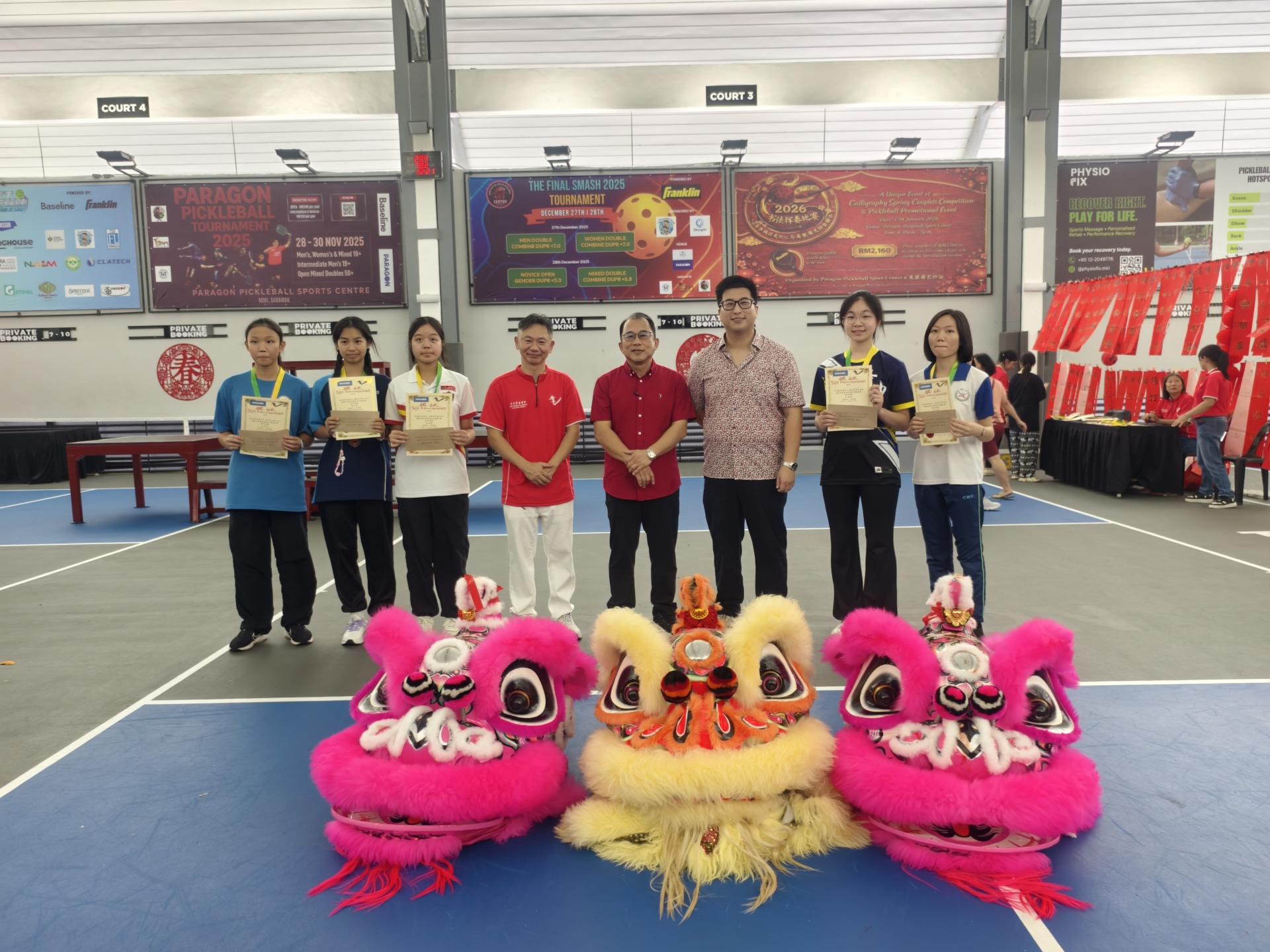 活动由多名嘉宾共同见证,包括百乐城匹克球中心主席林忠亮及夫人江明芬、执行董事林大富、美里书艺学会秘书李家武、美里市长俞小珊、美里省华总会长许信隆,以及开幕主宾砂拉越交通部长拿督斯里李景胜。活动上,主办单位也向嘉宾赠送挥春对联,象征丙午年新春喜气吉祥。