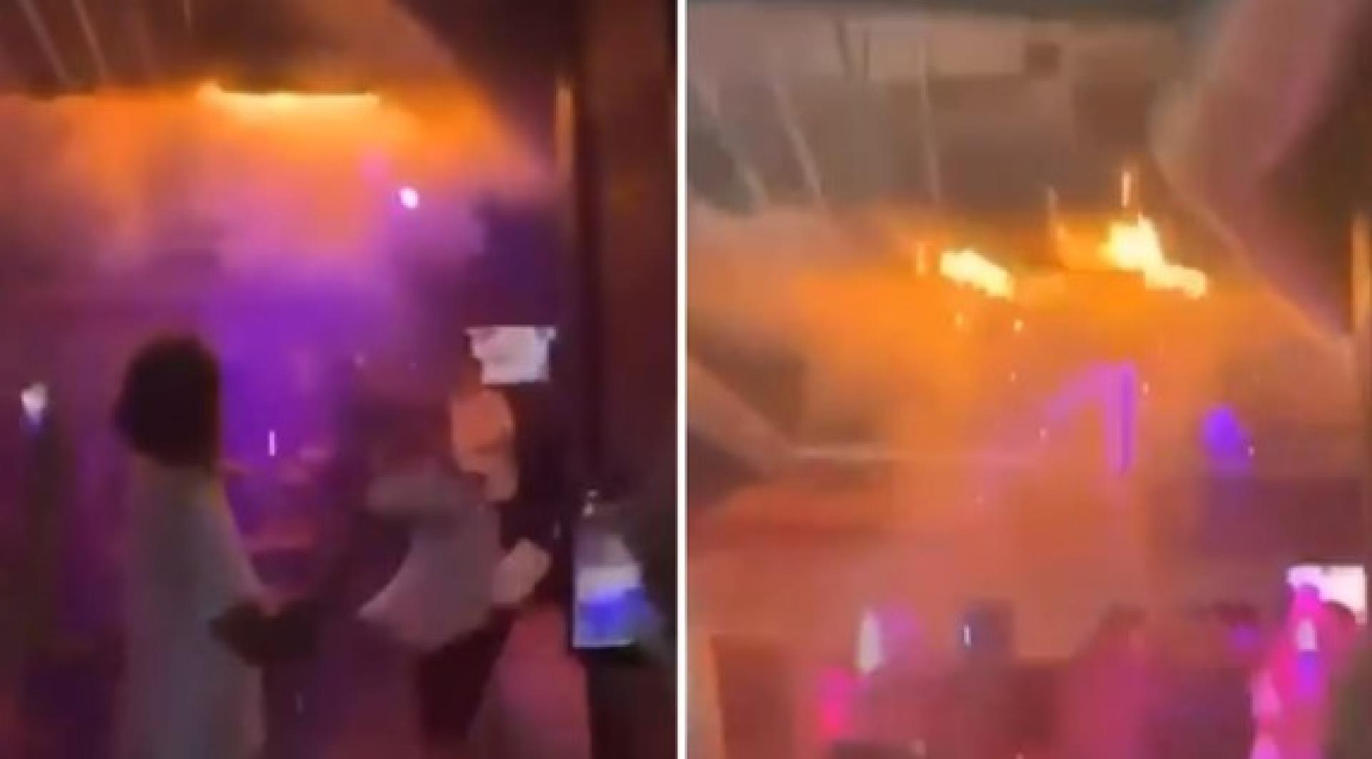 社媒上流传的影片显时当场有人试图灭掉天花板的火。 事发当晚,酒吧内挤满年轻人,年龄多半介于15至20岁之间。一名目击者形容,“派对当时正热闹,音乐超嗨,香槟一直开”,并且看到女服务生将插有点燃仙女棒的酒瓶举向天花板。