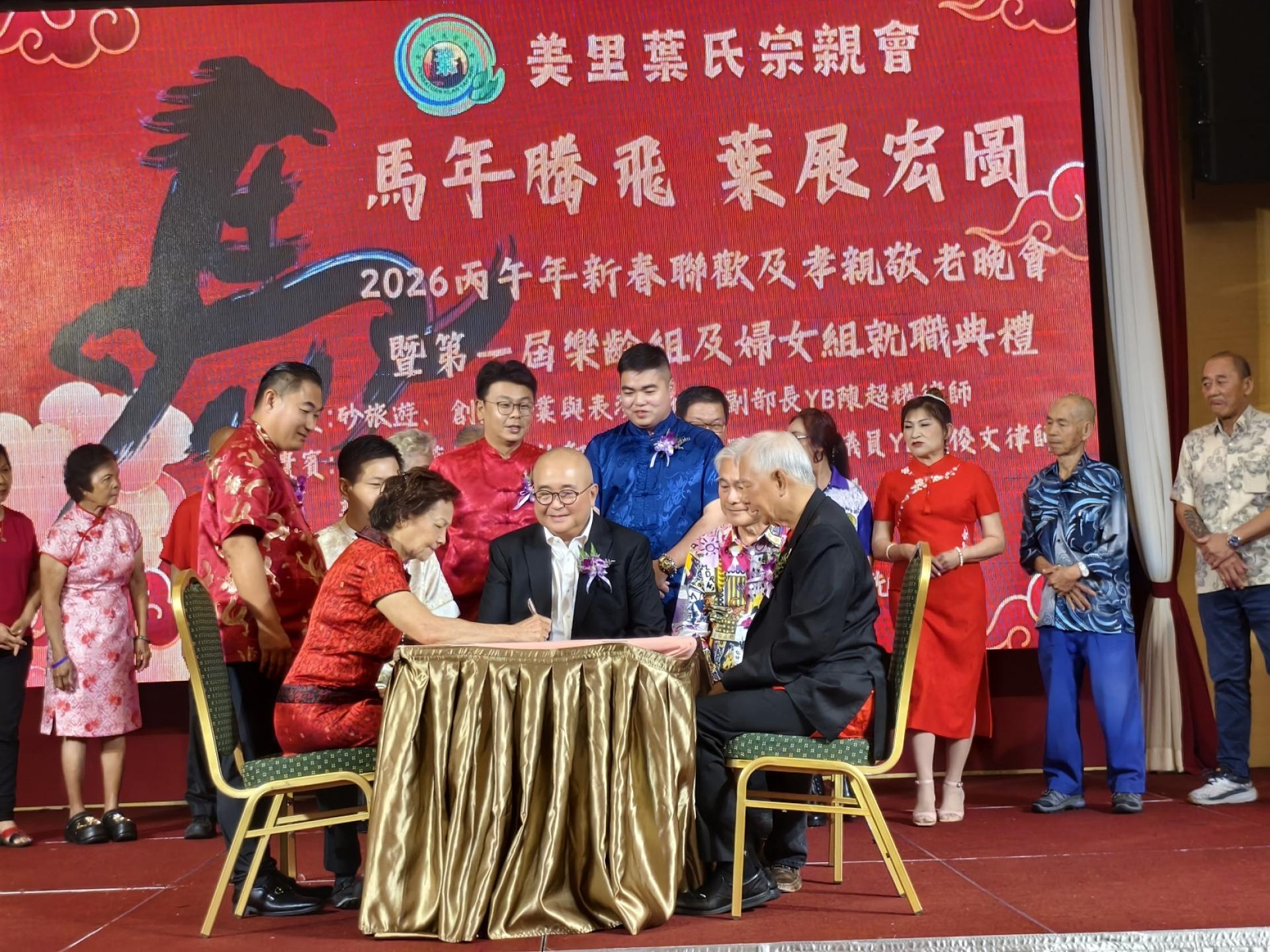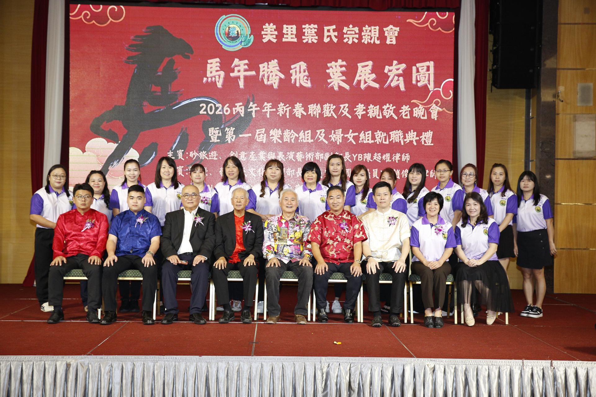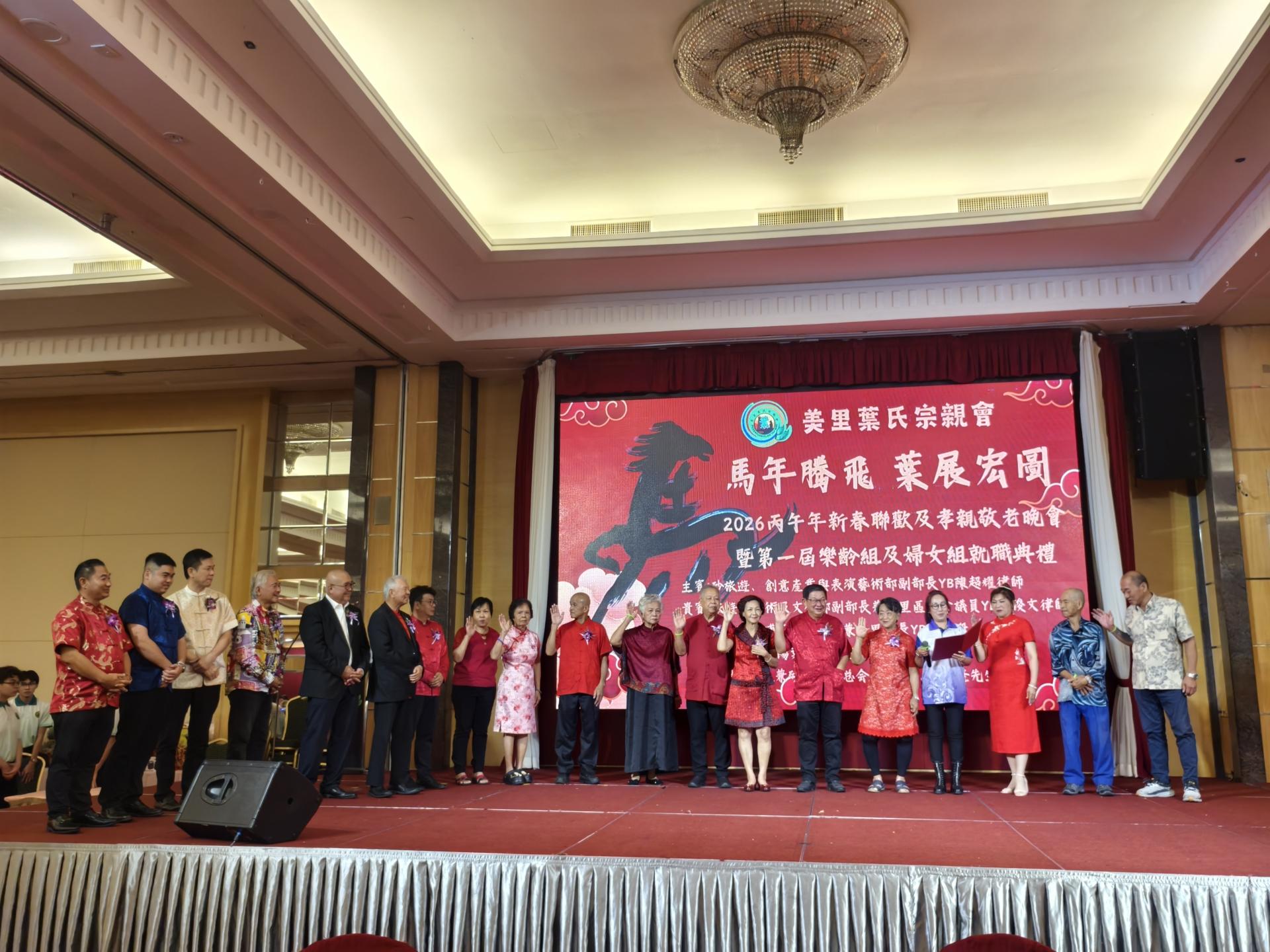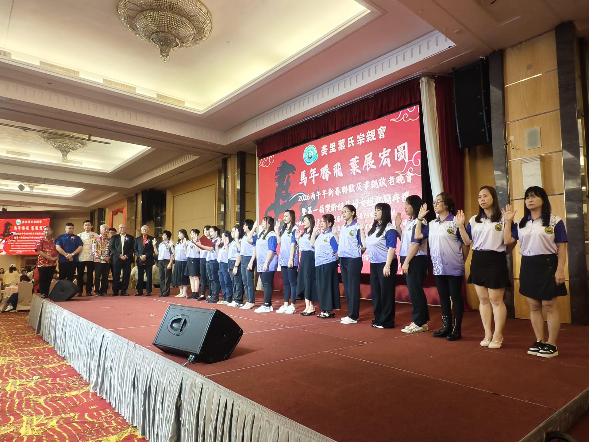 美里叶氏宗亲会第一届妇女组宣誓就职。 叶乃旺说,新春联欢晚宴是宗亲会一年一度的重要盛会,不仅是欢庆农历新年的平台,更是凝聚宗情、联系宗谊的重要时刻。通过每年的团聚,加强彼此交流与合作,让宗亲会在团结中成长,在传承中发展。