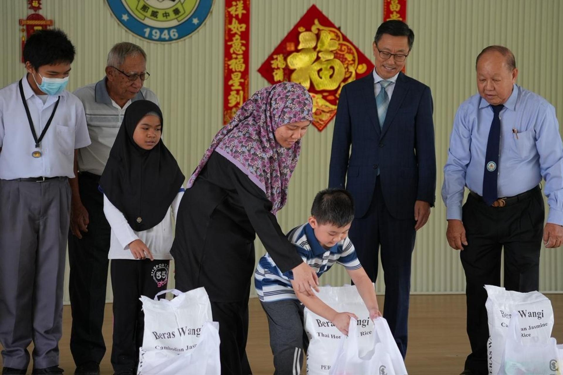 访问期间,陈少春向学校捐赠助学金,支持校务发展,并特别向6名穆斯林学生赠送物资,展现关怀与包容精神。有关捐赠不仅体现中国大使馆对汶莱华文教育的支持,也传递中汶两国之间的深厚情谊。