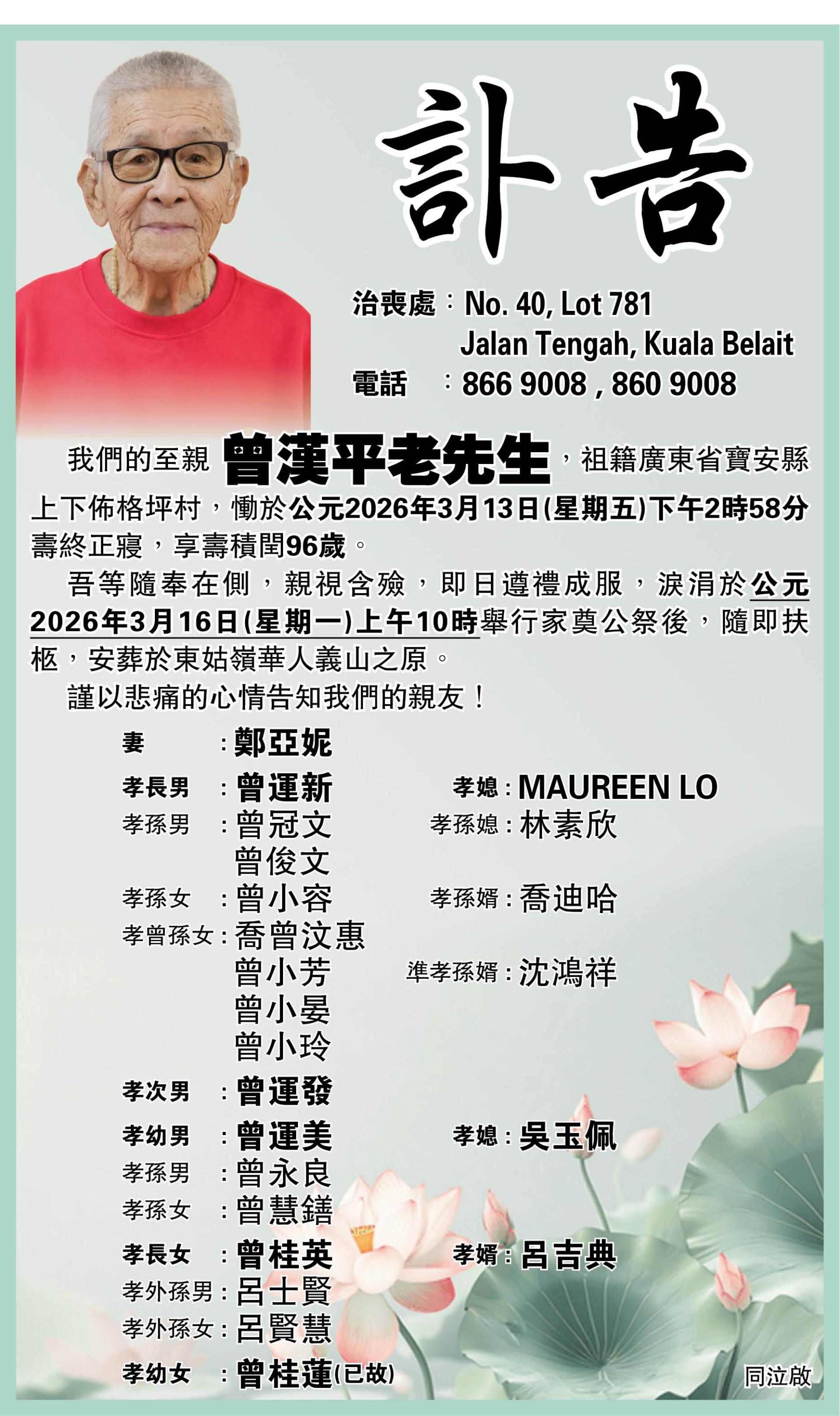 【讣告】曾漢平