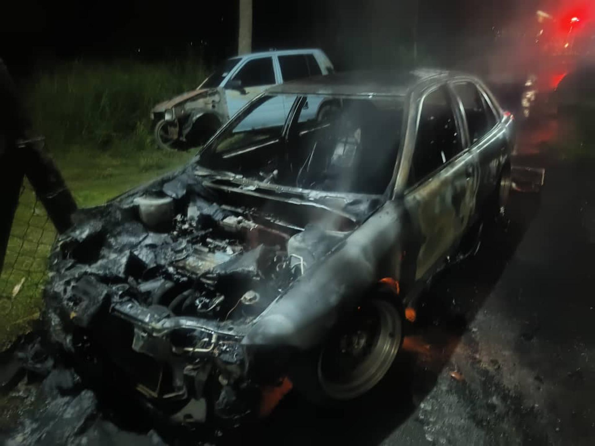 (本报美里7日讯) 昨晚深夜,美里甘榜埔奕丹绒峇都4K巷一辆轿车突发火警,整辆车被烈焰吞噬,所幸并无人员伤亡。