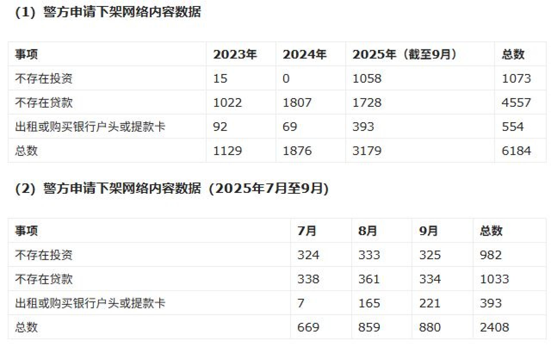 根据警方数据,警方于2023年要求下架上述3个网络内容高达1129个,去年则有1876个,但截至9月,警方今年要求下架的网络内容已达3179个。