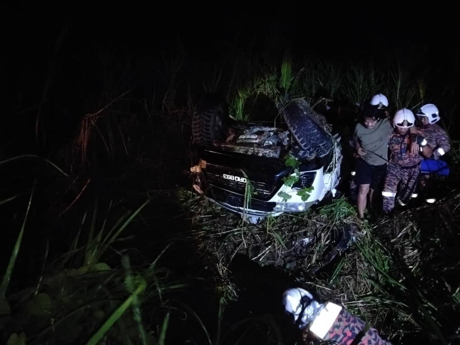 四驅車翻溝兩人輕傷 老越消拯隊深夜出勤