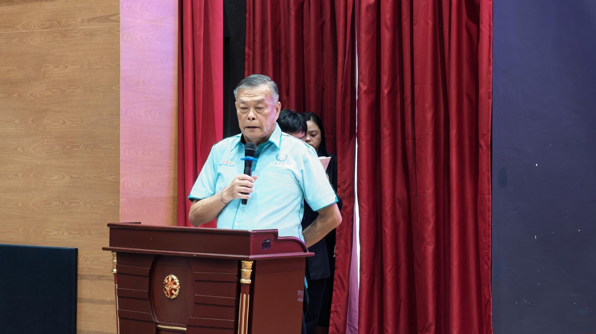 美里培民中学董事长许为隆致勉励词。