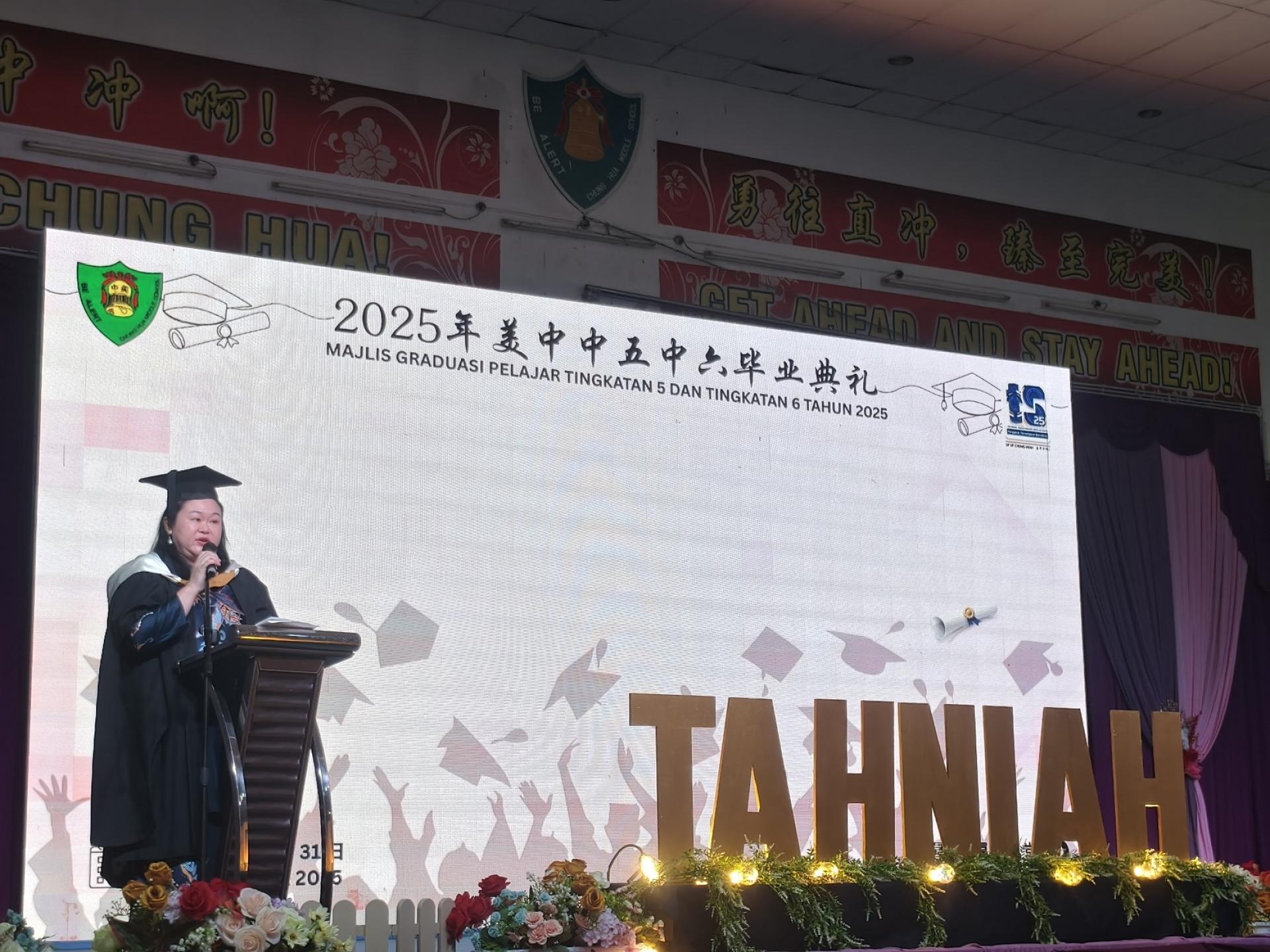 蔡幼兰是今早在2025年美中中五与中六毕业典礼上致开幕词时,如此表示。由于她不克出席,讲稿由董事部秘书陈丽黛代为宣读。