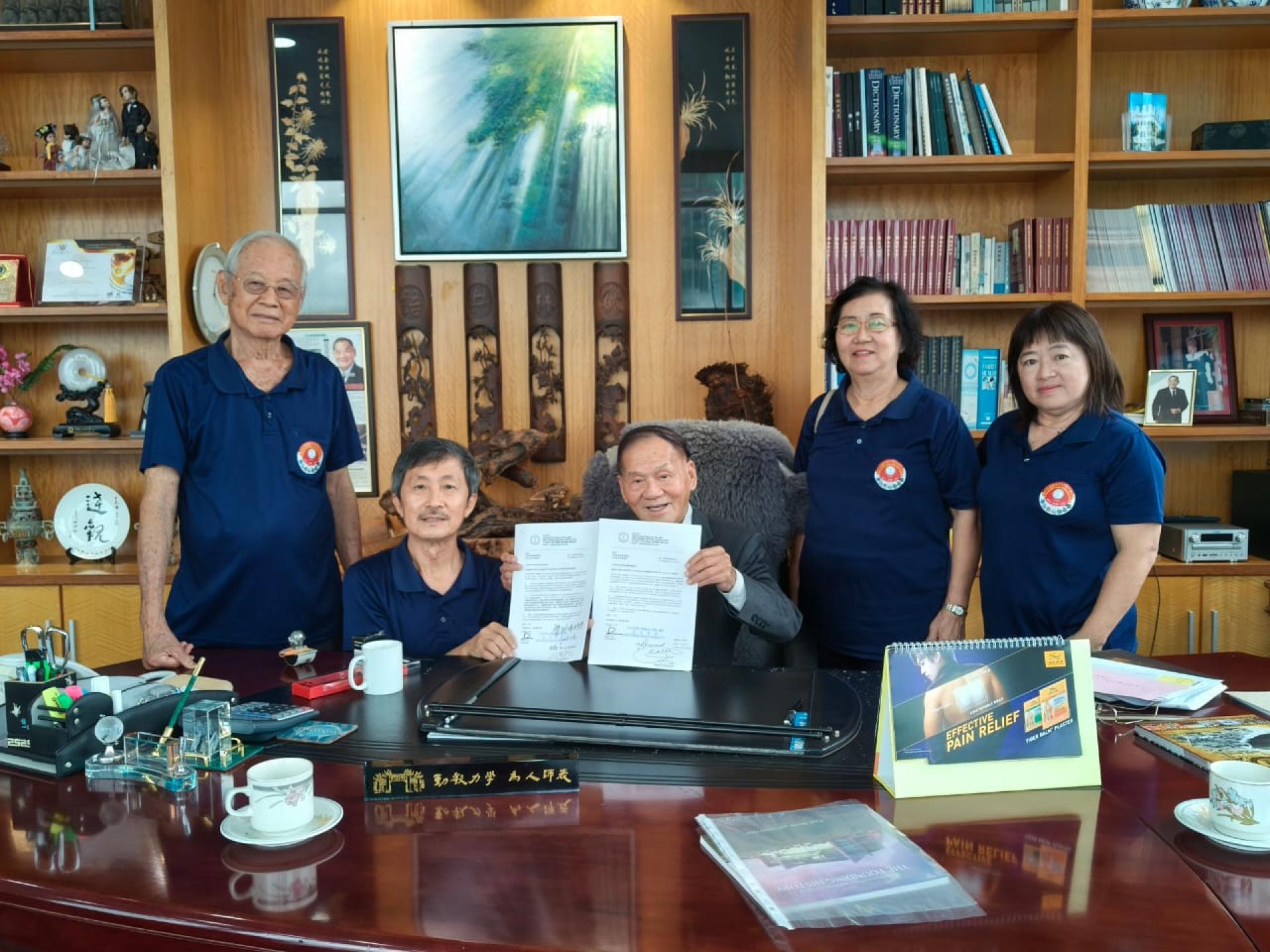 美里笔会主席许敬平(左)移交信件给世华大会剪彩嘉宾兼美里笔会名誉顾问温素华。