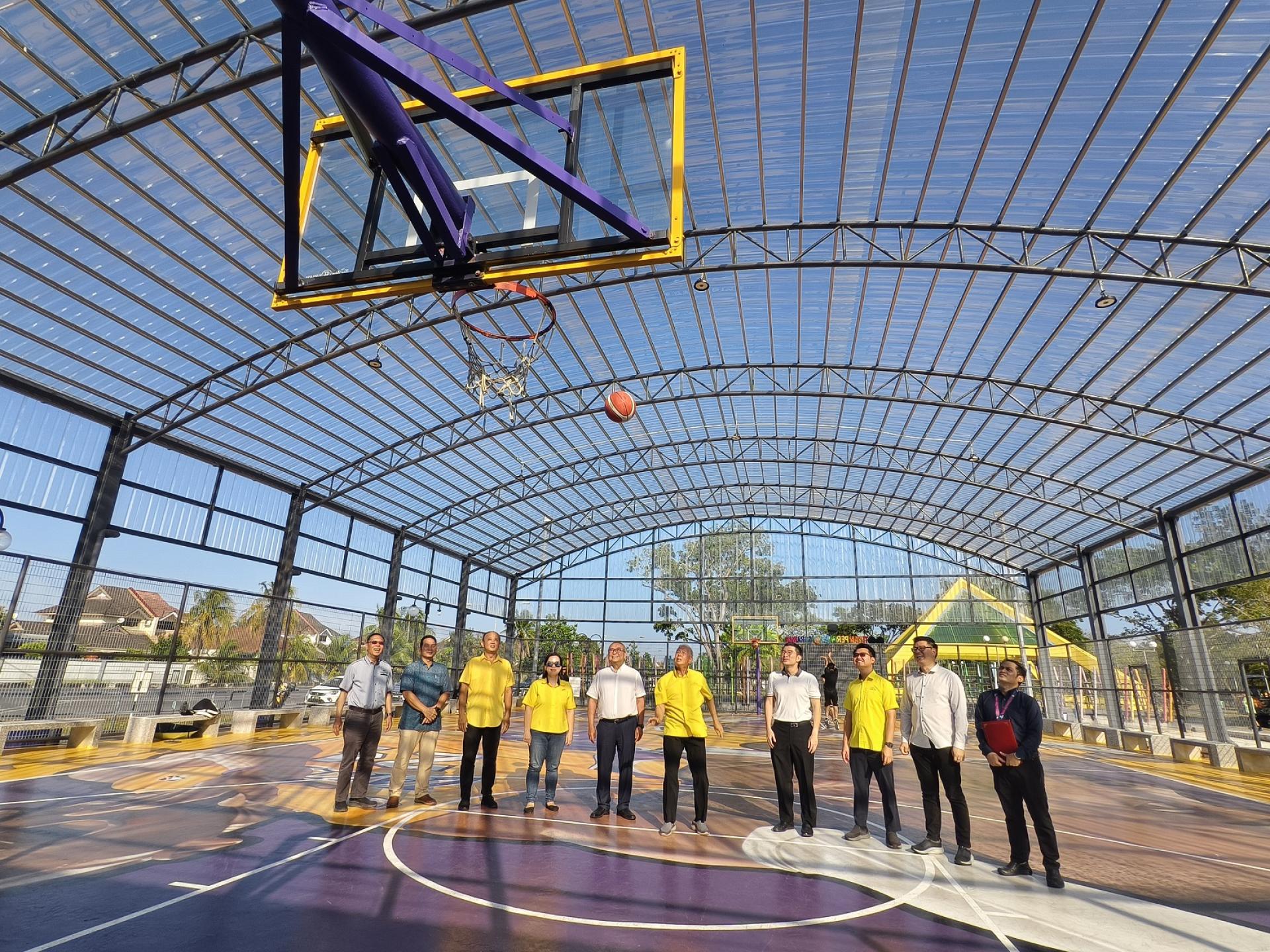 昇阳集团作为美里人造湖公园提升项目的赞助方,持续履行企业社会责任,过去曾翻新公园内多项设施。此次新落成的科比地板彩绘篮球场,已成为美里一大特色地标,结合运动设施与艺术创作,提升整体景观与使用体验。